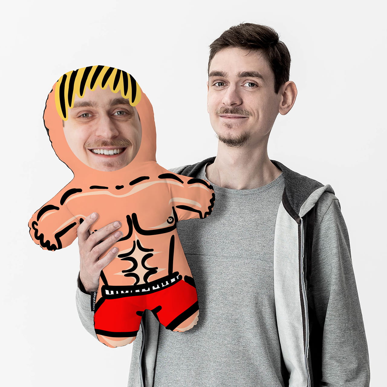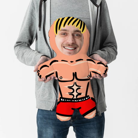 Będzie to również delikatna aluzja do tego, że blisko mu do popadnięcia w samouwielbienie. Jak wygląda taki śmieszny prezent dla chłopaka? Do zaprojektowanej przez nas na poduszce umięśnionej sylwetki męskiej zamieszczasz wybrane zdjęcie twarzy swojego ukochanego. To wszystko daje zabawny i lekko absurdalny efekt! Poduszka dla chłopaka to najlepszy pomysł na śmieszny prezent dla chłopaka na urodziny, na Walentynki lub prezent na Dzień Chłopaka.
