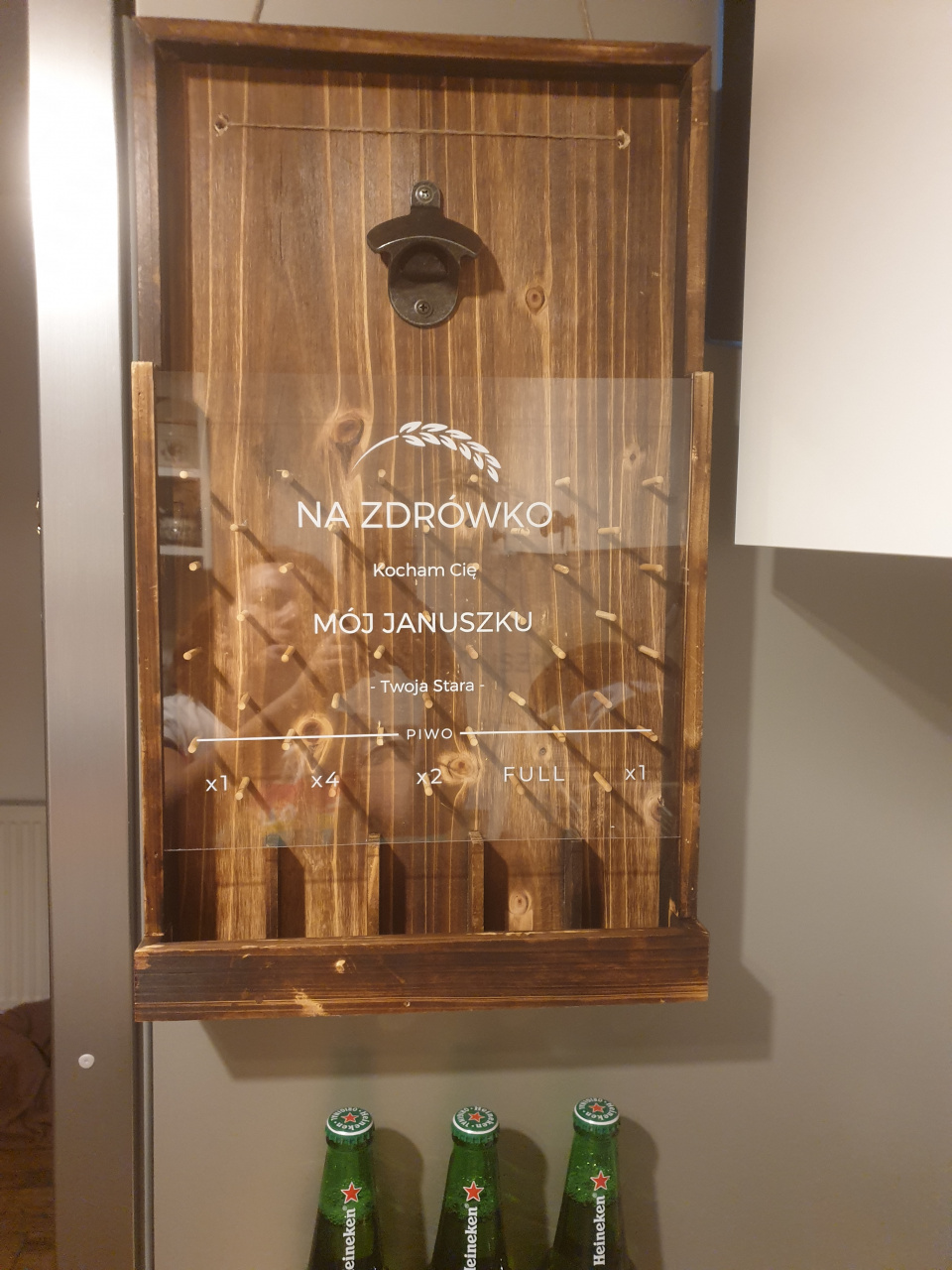Gustowny, pomysłowo wykonany, funkcjonalny i pamiątkowy pojemnik na kapsle jako prezent dla faceta. Personalizowany otwieracz z pojemnikiem na kapsle ma to wszystko. To wprost idealny prezent dla faceta, który nie potrafi sobie odmówić wieczornego piwka przed telewizorem. Drewno sosnowe jest bardzo popularnym materiałem dekoracyjnym, który doskonale pasuje do każdego stylu wnętrz i wystroju. Solidny, metalowy otwieracz z pojemnikiem sprawdzi się nie tylko w domu, ale również na działce lub tarasie. Właściciel może go umieścić blisko miejsca, w którym najbardziej lubi wypoczywać i spędzać wolny czas.