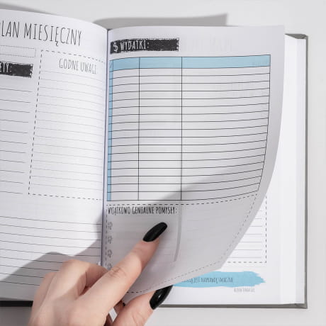 - strony miesięczne zawierające podsumowanie finansowe oraz miejsce na podsumowanie ostatnich czterech tygodni