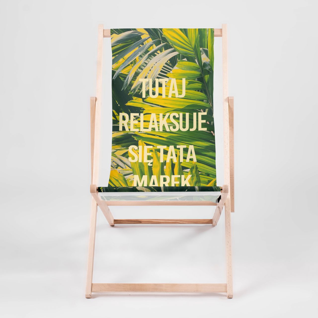 Leżak drewniany z liściastym motywem na materiale to prezent dla taty na urodziny z możliwością personalizacji. Zadedykuj upominek wyjątkowemu mężczyźnie, który zasługuje na chwilę relaksu po ciężkim tygodniu pracy. Połącz praktyczność przedmiotu z osobistym akcentem. Stwórz własną dedykację bądź skorzystaj z naszego krótkiego hasła. Napis może być wzruszający, zabawny lub nawiązywać bezpośrednio do okoliczności.