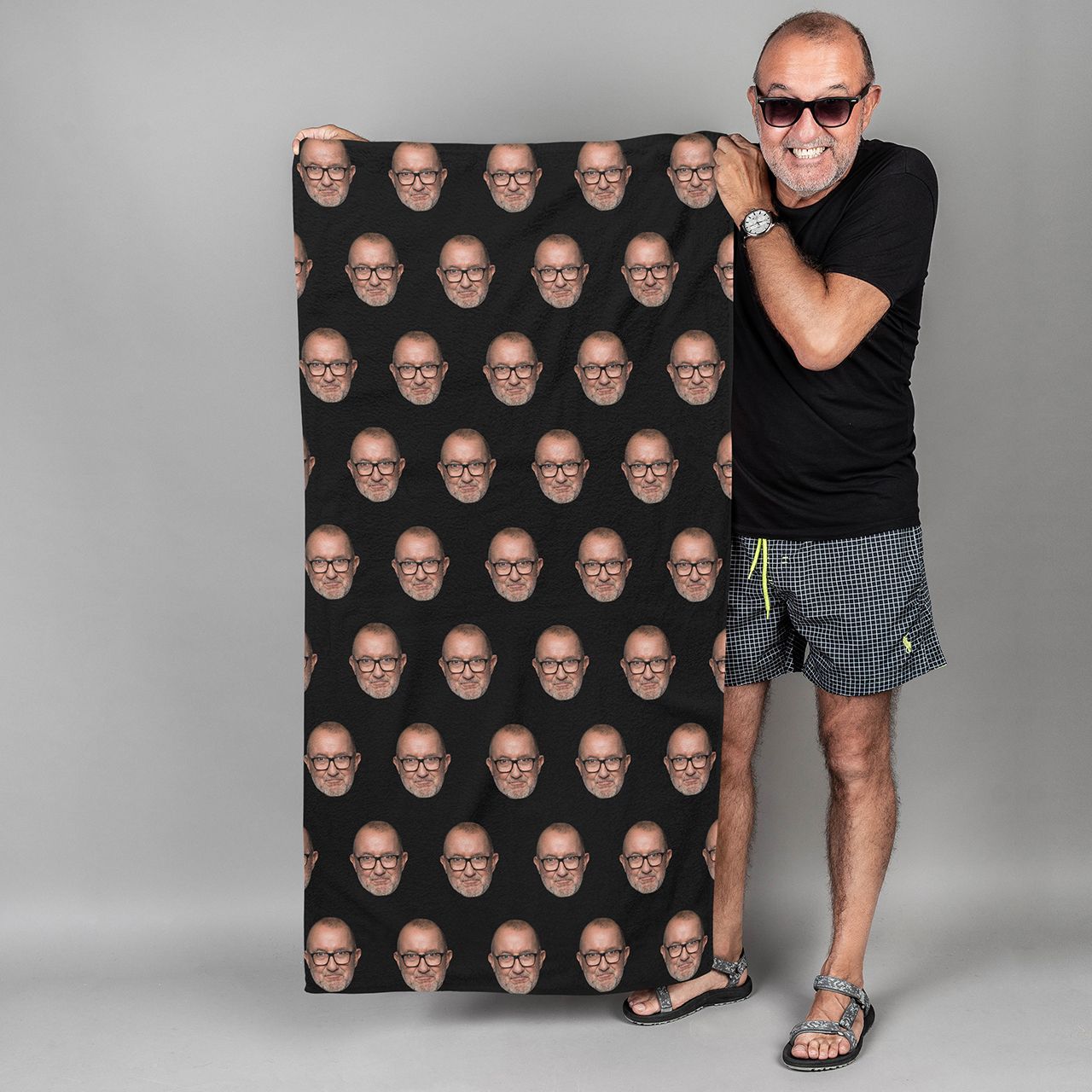Ręcznik z nadrukiem TWOJA TWARZ WYGLĄDA ZNAJOMO to hit wśród prezentów, który zaskoczy każdego faceta z poczuciem humoru. Możliwość naniesienia twarzy na całej powierzchni sprawia, że ten ręcznik z nadrukiem wywoła salwy śmiechu i stanie się numerem jeden na każdej plaży. Jeśli szukasz nietuzinkowego upominku, personalizowany ręcznik to strzał w dziesiątkę.