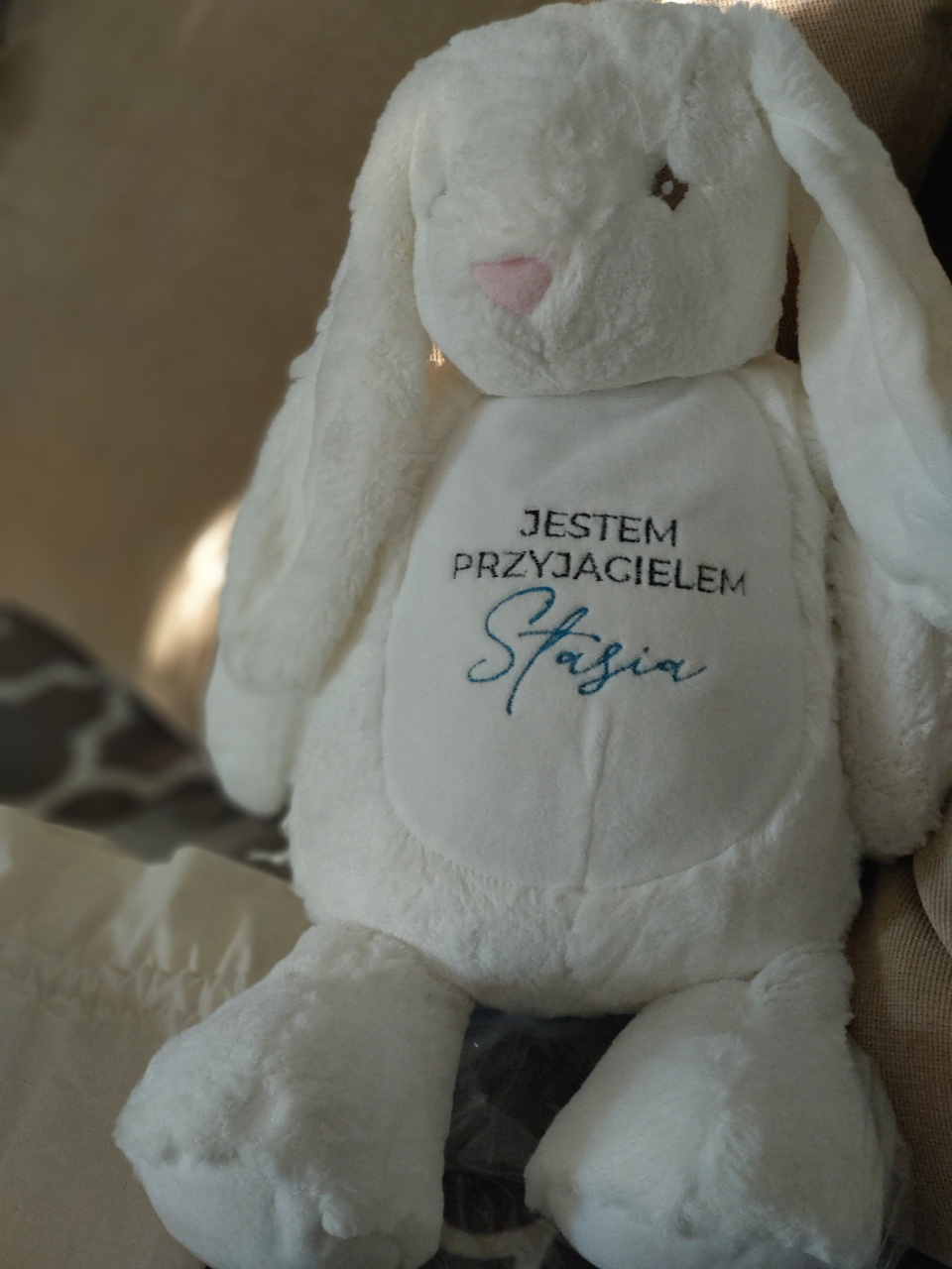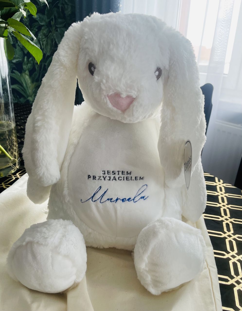 Uroczy króliczek maskotka to przytulanka dedykowana maluchom w każdym wieku. Maskotka z imieniem wybrana na prezent dla chłopca z okazji urodzin, Dnia Dziecka lub narodzin, to piękna pamiątka i gwarancja wieloletniej przyjaźni z długouchym zwierzakiem. Przytulanki dla dziecka to już tradycja. Dzieciństwo bez ukochanego pluszaka nie byłoby takie magiczne. Króliczek maskotka rozumie swojego małego właściciela bez słów, jest zawsze przy nim i dba o jego poczucie bezpieczeństwa. Maskotka z imieniem to fantastyczny pomysł na prezent dla chłopca i sprawdzony sposób na uszczęśliwienie najmłodszych.