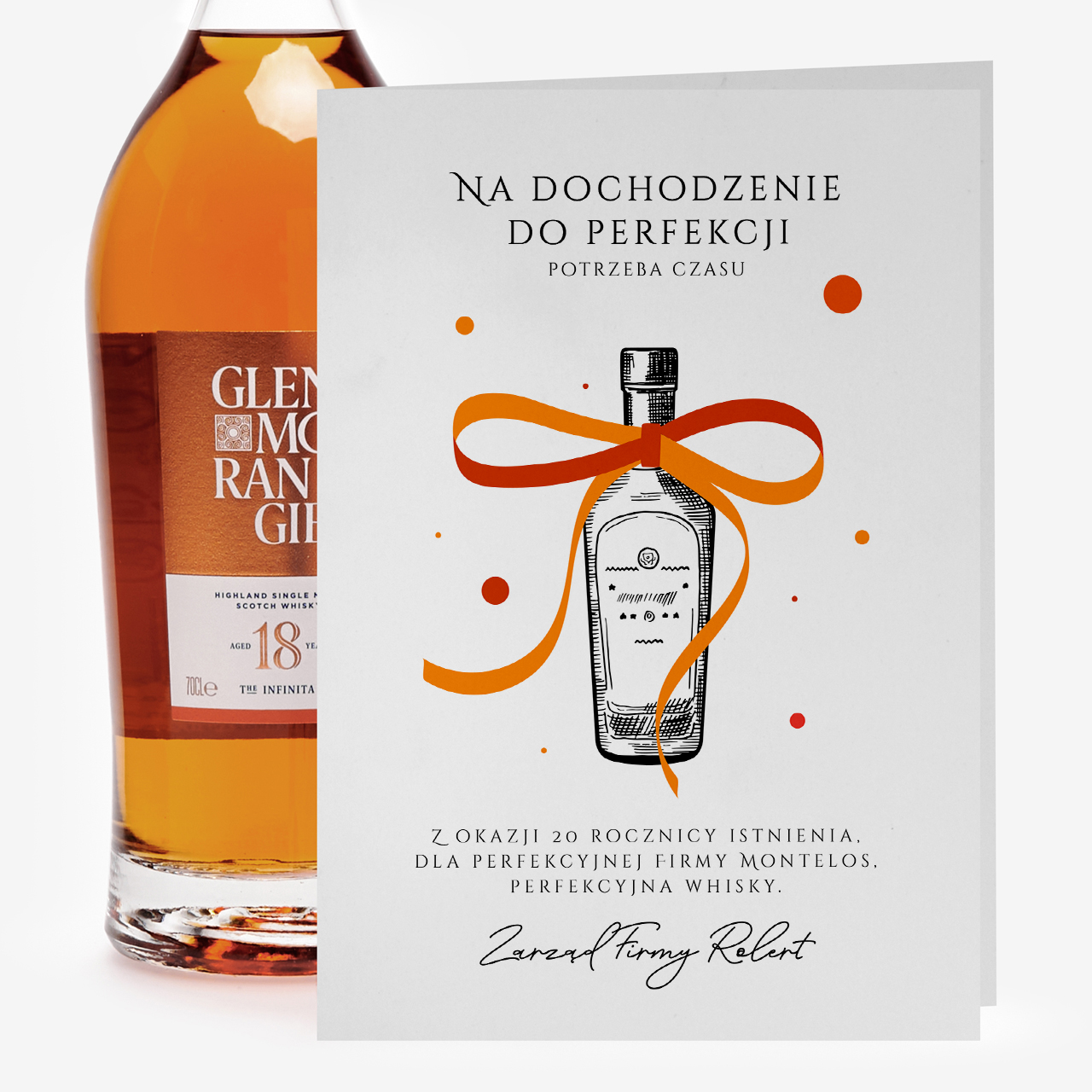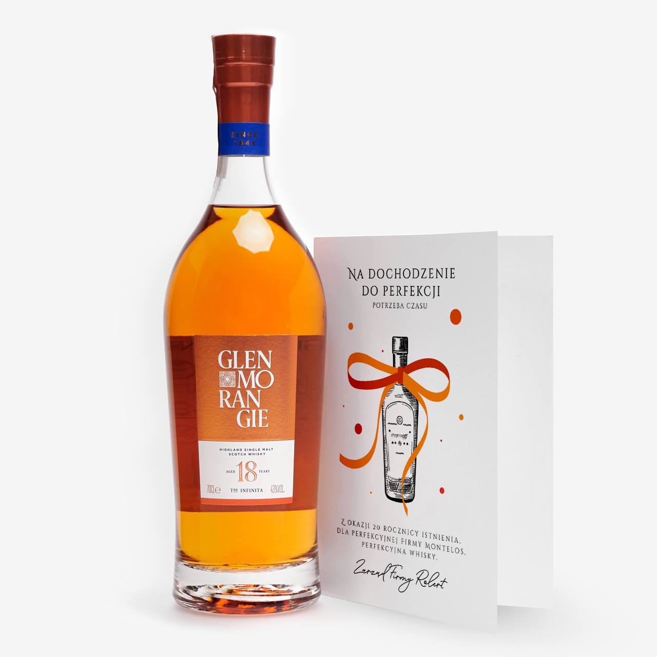 W skład zestawu wchodzi: Szkocka whisky Glenmorangie Highland Single Malt 0,7l, kartka personalizowana