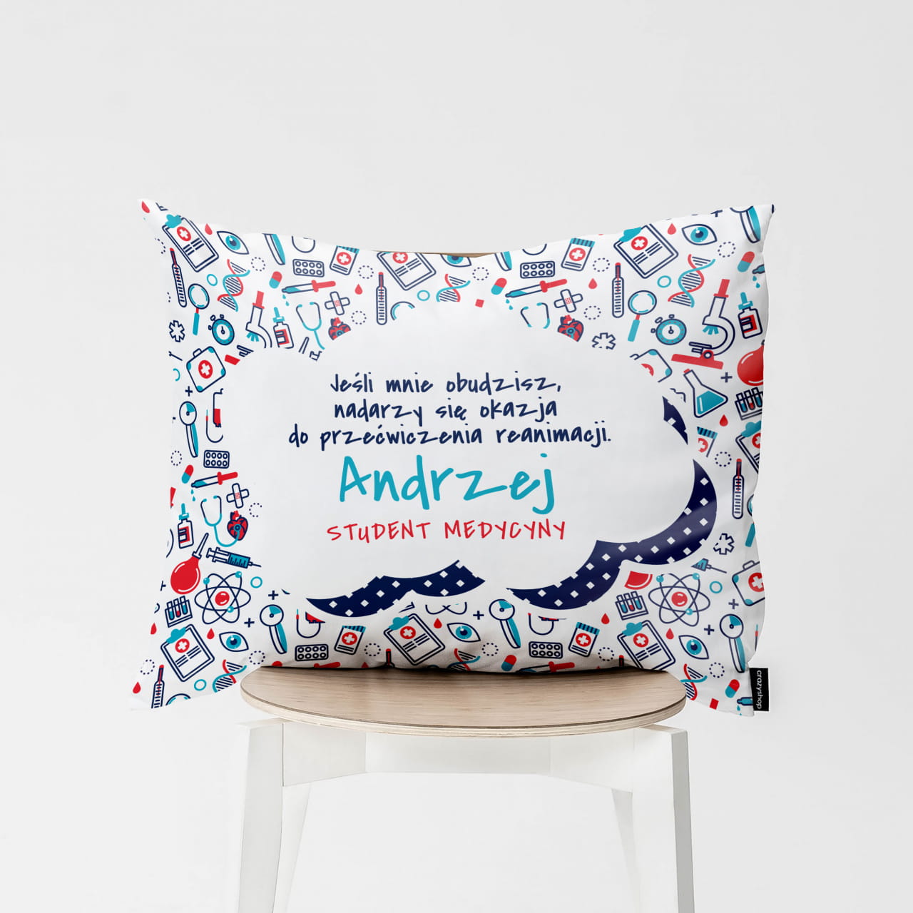 Każdemu należy się chwila na krótką drzemkę, zwłaszcza jeśli jest się studentem medycyny. Jeśli szukasz zatem prezentu dla przyszłego lekarza, zmęczonego wyczepującą nauką, proponujemy tą oto personalizowaną poduszkę. Taka poduszka z ciekawym wzorem będzie idealna jako prezent dla studenta medycyny.