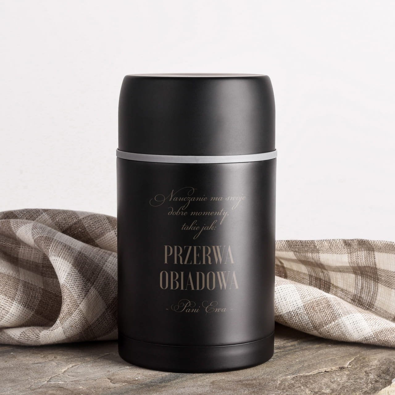 Ten termos obiadowy na zupę to połączenie elegancji, funkcjonalności i odrobiny zabawy. Idealnie sprawdzi się jako drobny, ale przemyślany upominek, który pokaże, że doceniasz trud i zaangażowanie nauczyciela. Dzięki personalizowanemu grawerowi stanie się wyjątkową pamiątką - przypomnieniem, że nawet w pracy warto celebrować chwilę przerwy.