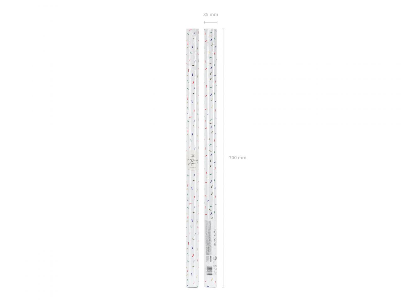 Wręczanie prezentów oraz ich otrzymywanie to ogromna przyjemność, tym większa jeśli zadbamy o odpowiednią oprawę wybranego upominku. Papier do pakowania prezentów pozwoli uzyskać piękny, estetyczny efekt, który będzie cieszył oczy zanim z dziecięcą radością odkryjemy co kryje się pod nim. Papier do prezentów z motywem kolorowej posypki będzie idealny zarówno na święta jak i urodziny.