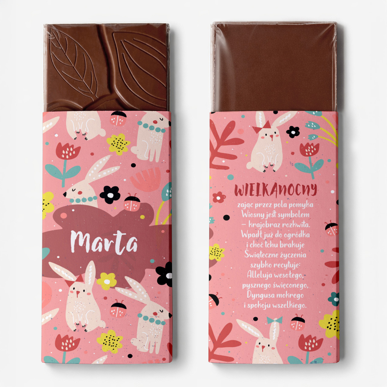 Nietypowa czekolada na Wielkanoc wykonana ręcznie to słodki upominek dla dziewczynki. Taką czekoladę na Wielkanoc polecamy jako drobiazg dla dziewczynki.
