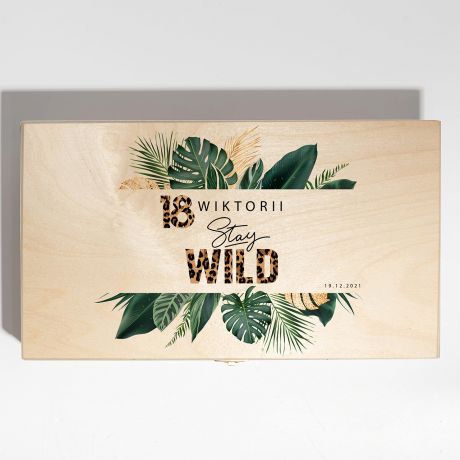 Skrzynka na wino na 18 urodziny STAY WILD to świetny pomysł na personalizowany upominek dla niej.