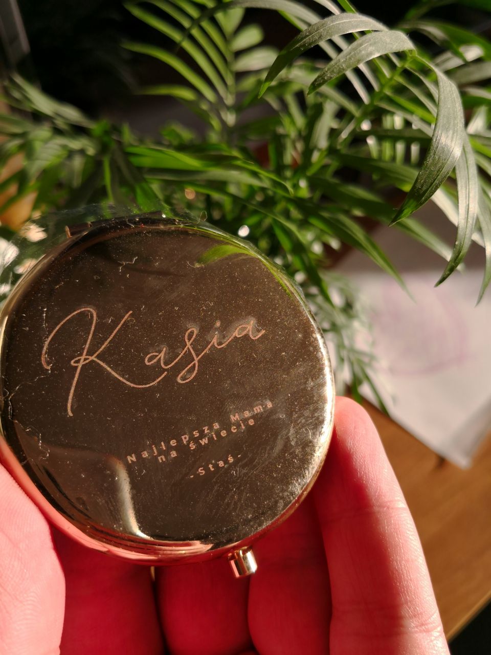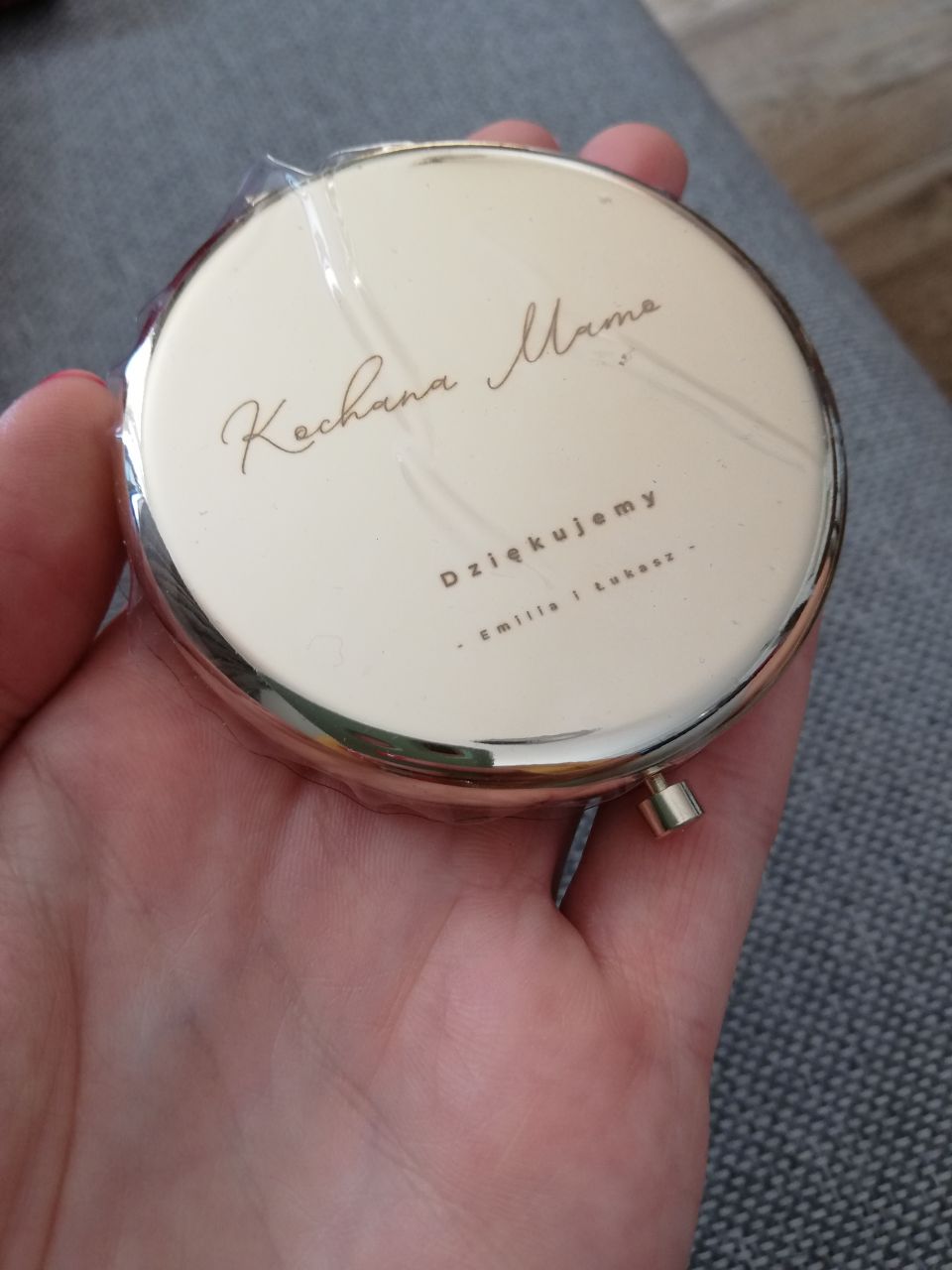 piękne lustereczko, bardzo ładny grawer i kolor. troszkę mniejsze niż się spodziewałam ale nie jest to żaden problem. Wesoła naklejka z Waszym logo według mnie powinna być w innym miejscu, najlepiej z tyłu.