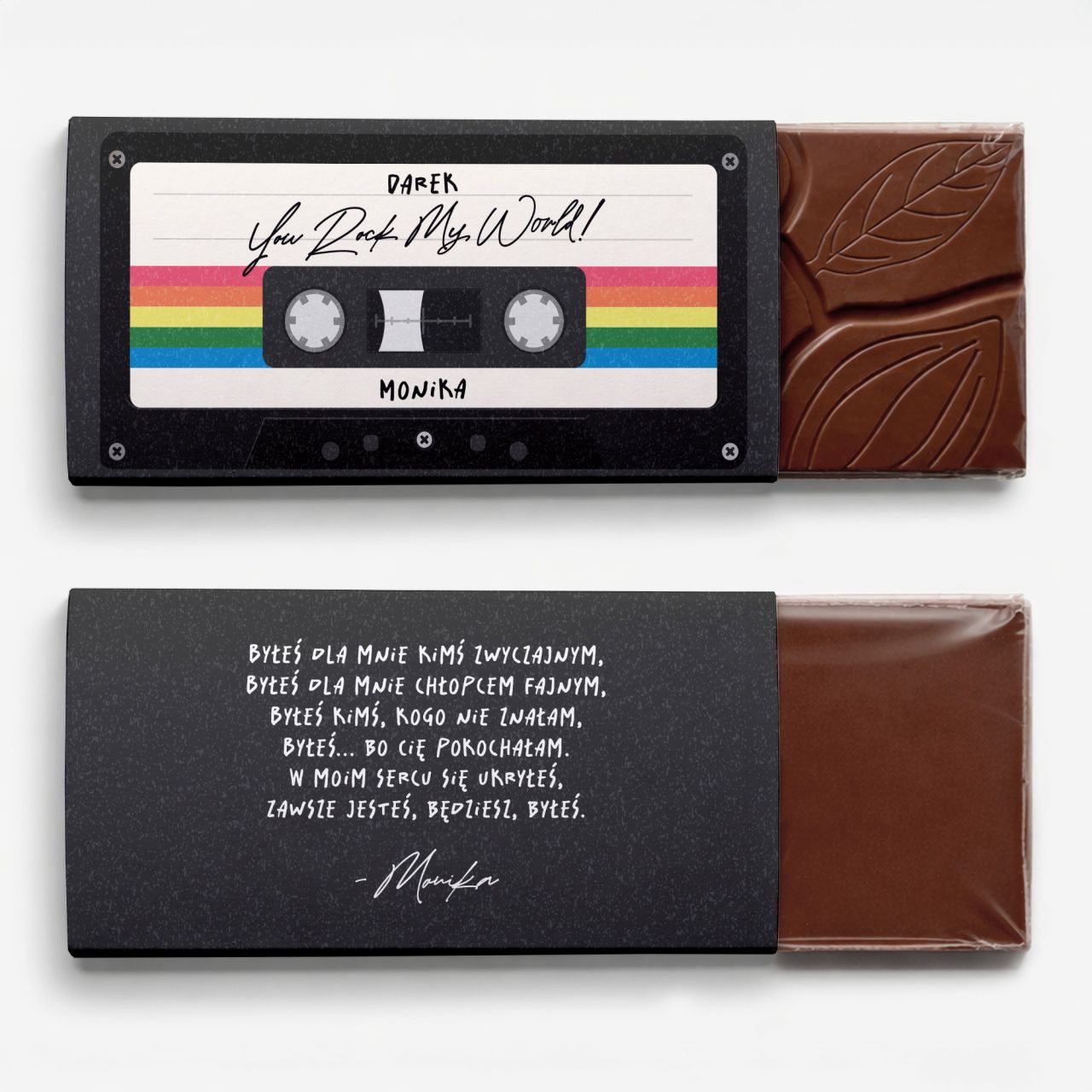 Stylizowana na kasetę VHS oprawa to kolejna niespodzianka warta uwagi. Najlepszy upominek dla ukochanego to taki, w którym solenizant odnajduje siebie. Imienna dedykacja to najlepszy sposób na nadanie podarunkowi osobistego charakteru. Wypełnij puste pola własnym tekstem. Wybierz wzruszające życzenia odpowiednie do okoliczności. Czekolada KASETA z motywem zdobniczym w postaci kartonika z nadrukiem to piękny drobiazg, który z pewnością będzie doceniony przez każdego mężczyznę. Rocznica związku, urodziny, Walentynki, Dzień Chłopaka każdy z tych momentów jest wyjątkowy i każdy zasługuje na celebrowanie.