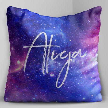 Jak opowiadać dziecku o Wszechświecie? Patrz z maluchem w niebo, studiuj piękne albumy i odkrywaj z maluchem niesamowity świat galaktyki. Przestrzeń pozaziemska to fascynująca nauka, która przyciąga do siebie najmłodszych. Jeśli masz w domu małego wielbiciela uniwersum, to poduszka KOSMOS będzie najlepszym pomysłem na upominek. Urodziny, imieniny, Dzień Dziecka a może mikołajki? Z pewnością wykorzystasz kosmiczne moce prezentu w najbardziej odpowiedniej chwili. Wpisz imię solenizanta, a my umieścimy je na poszewce.