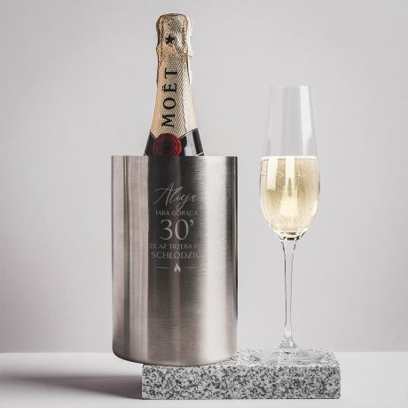 Grawerowany cooler do szampana to wspaniały prezent urodzinowy na 30 dla przyjaciółki, siostry lub dla dalszej znajomej.