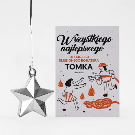 Balon serce + personalizowana kartka to świetny pomysł na prezent dla chłopaka strażaka na urodziny, Walentynki lub na Dzień Strażaka wypadający 4 maja.