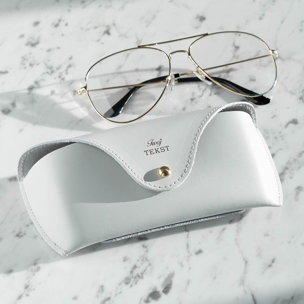 Etui na okulary z dedykacją w kolorze szarym to świetny pomysł na praktyczny i elegancki prezent.