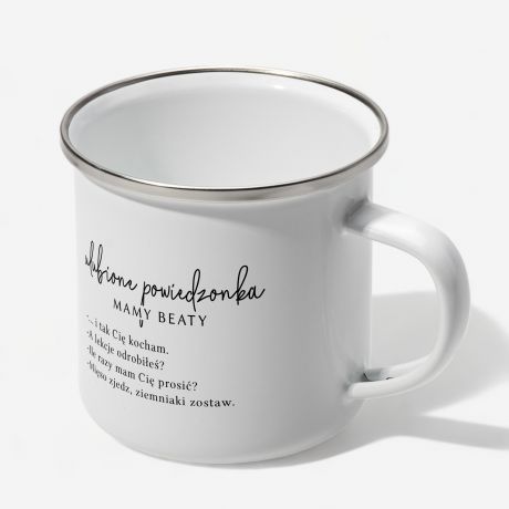 To kubek na prezent, który nie tylko bawi treścią, ale też sprawdza się w codziennym użytkowaniu. Dzięki możliwości dodania imienia powstaje personalizowany kubek, dopasowany do osoby, którą chcesz obdarować. Właśnie dlatego tak dobrze sprawdza się emaliowany kubek mamy POWIEDZONKA. Praktyczny, zabawny i wspaniały na co dzień.
