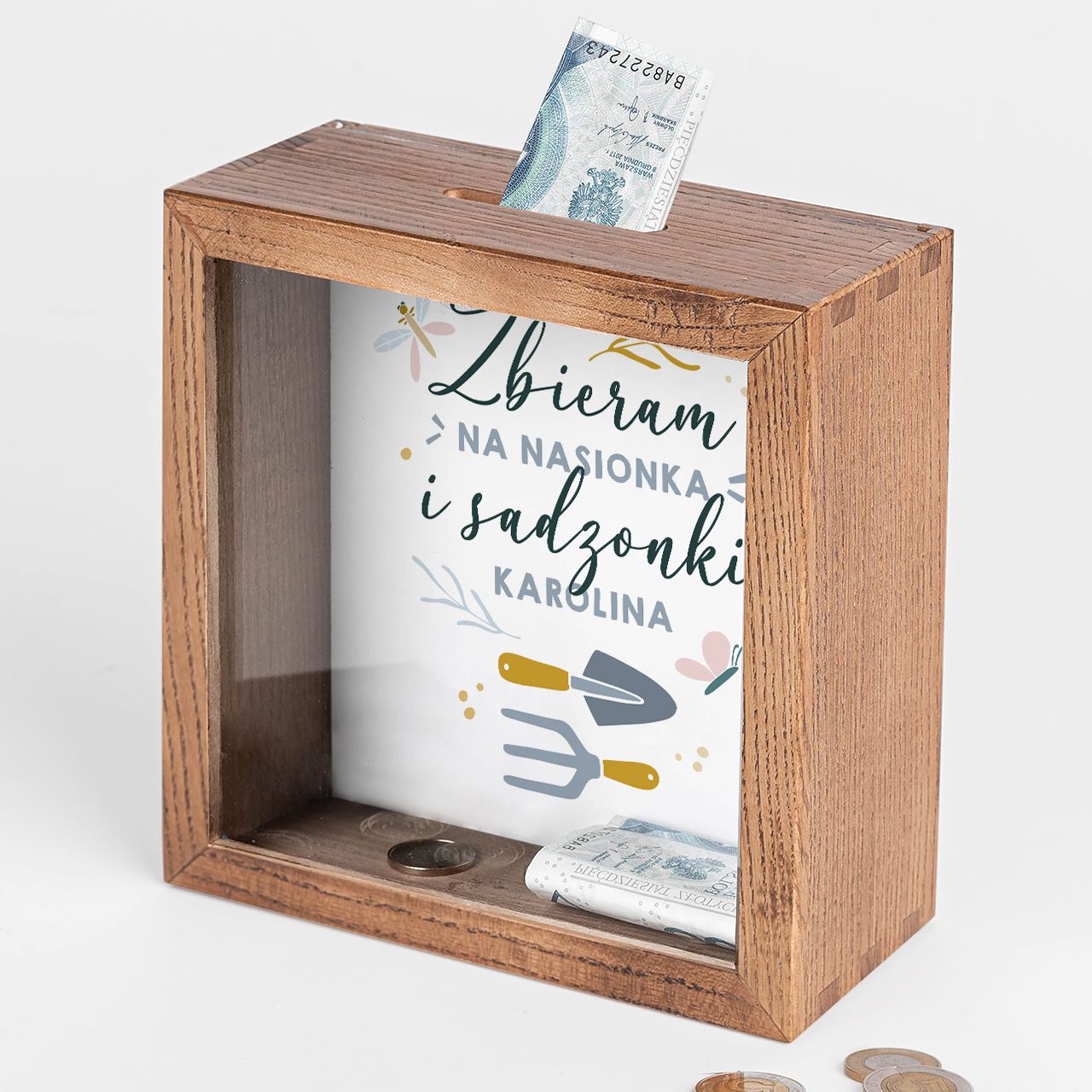 To niezwykła skarbonka na prezent, który sprawdzi się na każdą okazję! Będzie doskonałym wyborem jako prezent dla działkowca, który dba o swój zielony zakątek. Jeśli szukasz oryginalnego pomysłu na prezent dla florystki lub prezent dla ogrodniczki, ta skarbonka z szybką ZBIERAM NA NASIONKA I SADZONKI będzie strzałem w dziesiątkę. Podaruj bliskiej osobie coś, co pomoże jej realizować ogrodnicze marzenia!