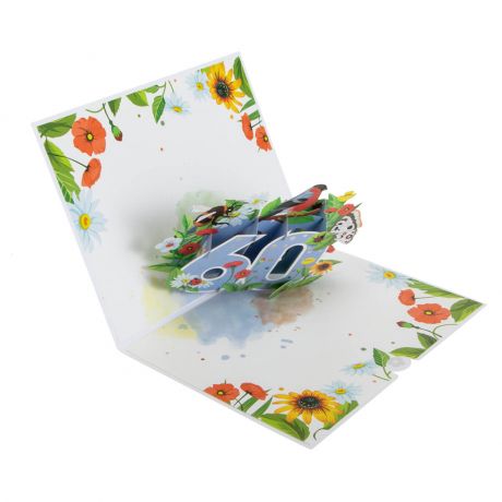 Kartka na 60 urodziny ręcznie robiona POLNE KWIATY