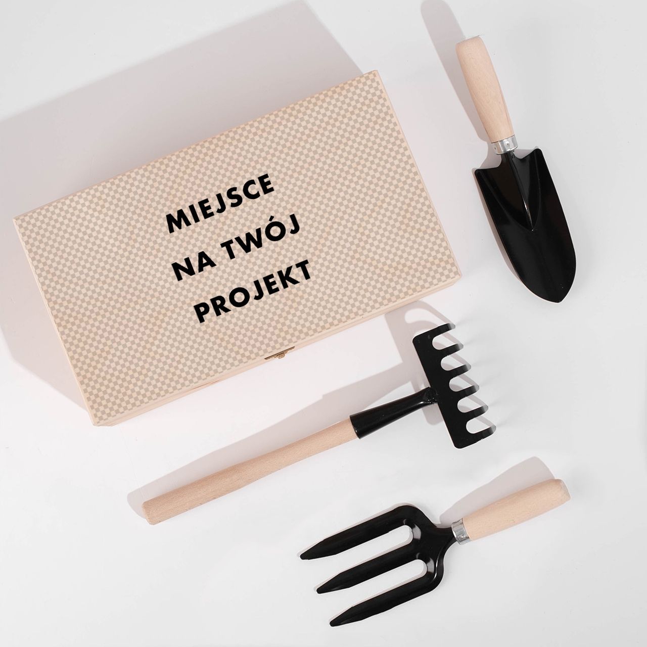 Personalizowany ZESTAW NARZĘDZI OGRODOWYCH w drewnianej skrzynce