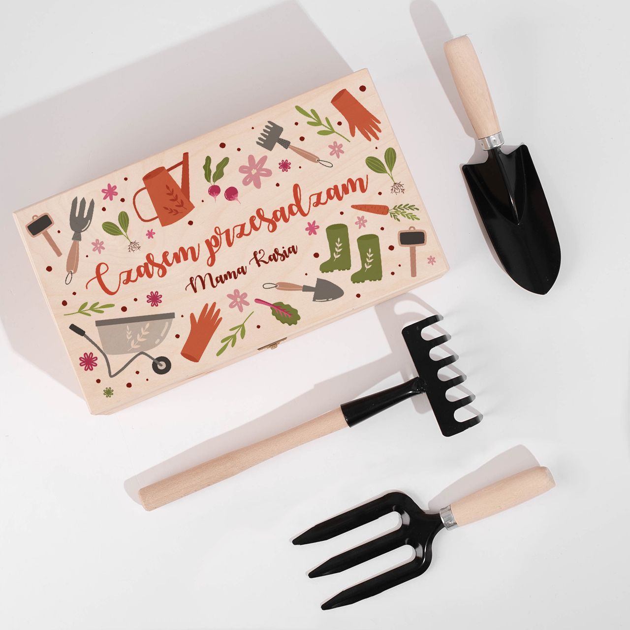 Rodzice tak już mają, że czasem przesadzają, ale najważniejsze jest to, że zawsze robią to z wyczuciem i wielką klasą! W końcu kieruje nimi bezgraniczna miłość i niezawodna intuicja. Podaruj zestaw ogrodniczy dla mamy, która nie tylko w życiu rodzicielskim lubi przesadzać i nierzadko powstają z tego przysłowiowe ,,ładne kwiatki. Praktyczny zestaw ogrodniczy dla mamy to drewniana skrzynka z personalizacją, w której ukryliśmy skarby ogrodnika. Efektowna z zewnątrz, a w środku równie urzekająca skrzynka posłuży właścicielce przez długie lata w ogrodzie lub na działce.