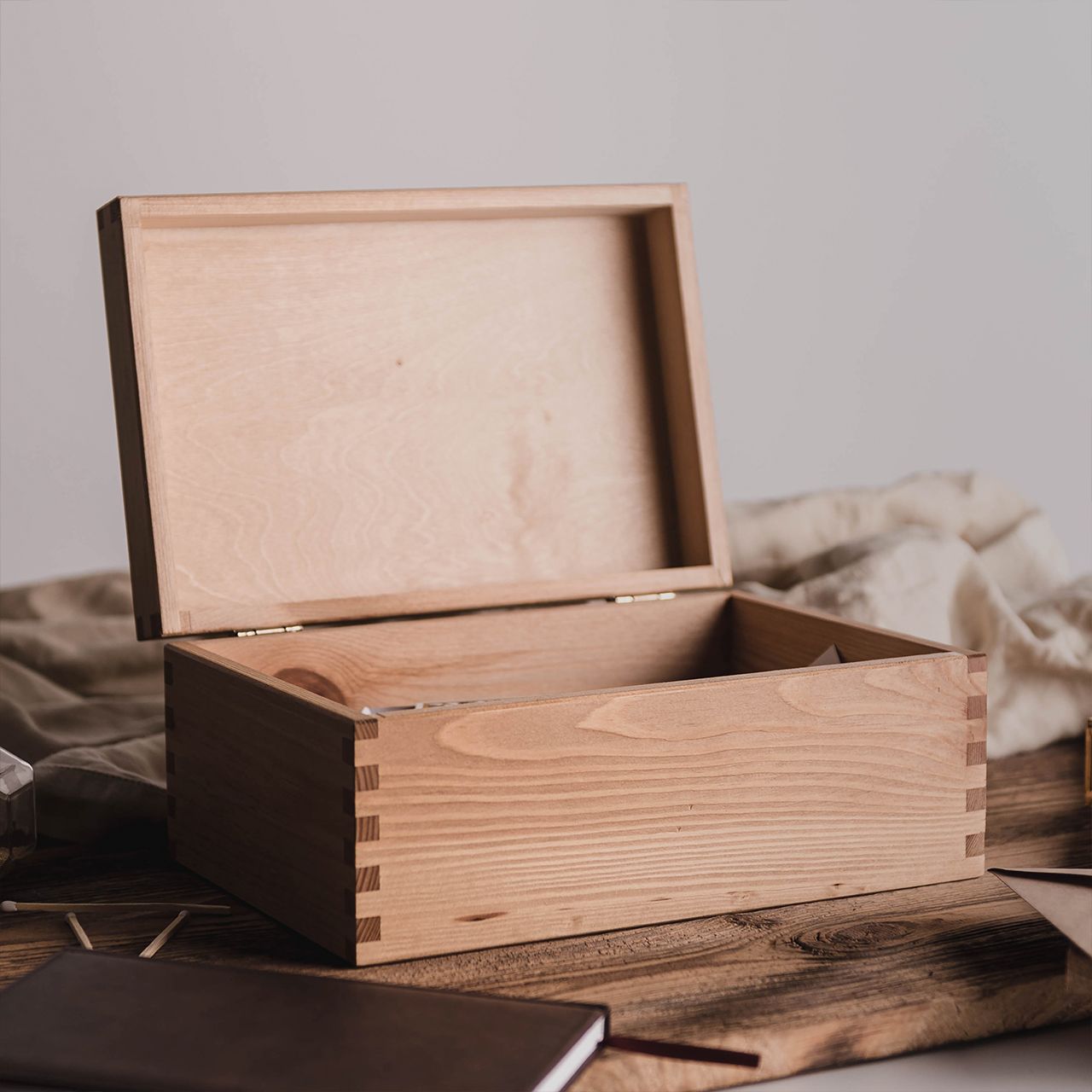 Pudełko na pamiątki z własnym projektem to wyjątkowy i personalizowany sposób na przechowywanie drogocennych wspomnień i przedmiotów. Wykonane jest z drewna jesionu, które zostało pomalowane na piękny, naturalny kolor dębowy, co nadaje mu eleganckiego i wyjątkowego wyglądu. Skrzynia ta może być wspaniałym prezentem na różne okazje, takie jak ślub, rocznicę, urodziny czy chrzest i wiele innych. Można w niej przechowywać zdjęcia, listy, biżuterię lub inne ważne przedmioty, które mają szczególną wartość dla obdarowanej osoby. Co czyni tę skrzynię na pamiątki jeszcze bardziej wyjątkową, to możliwość dodania własnego projektu. Można na niej umieścić personalizowany napis, logo, wzór czy nawet zdjęcie, co sprawi, że skrzynia stanie się jeszcze bardziej spersonalizowanym prezentem, który na pewno zostanie doceniony przez obdarowaną osobę.