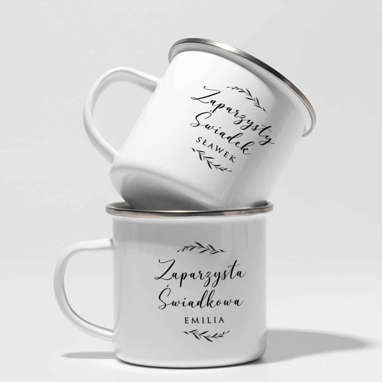 Emaliowane kubki to fajny pomysł na personalizowany prezent dla świadków.