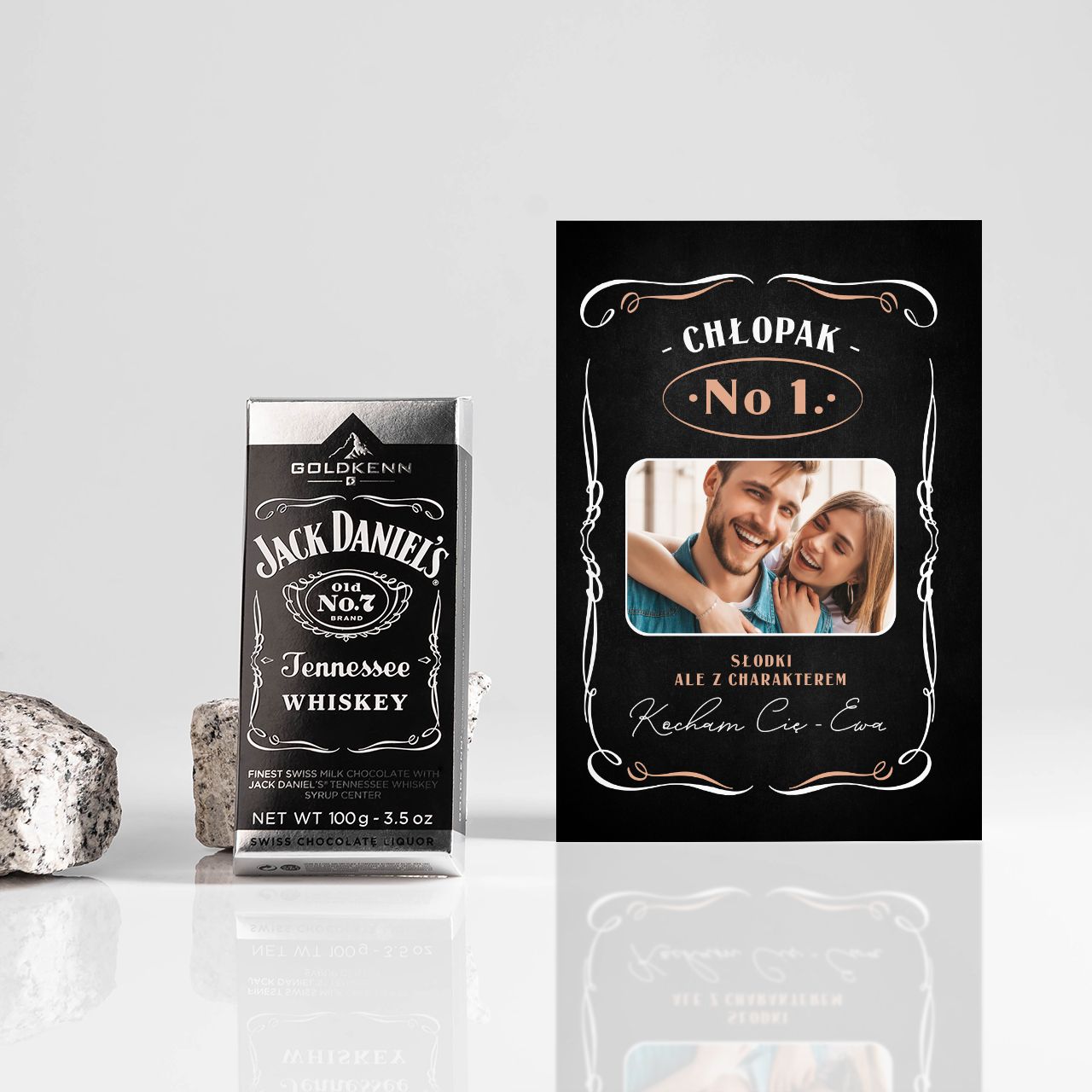W komplecie: czekolada Jack Daniel's i personalizowana kartka