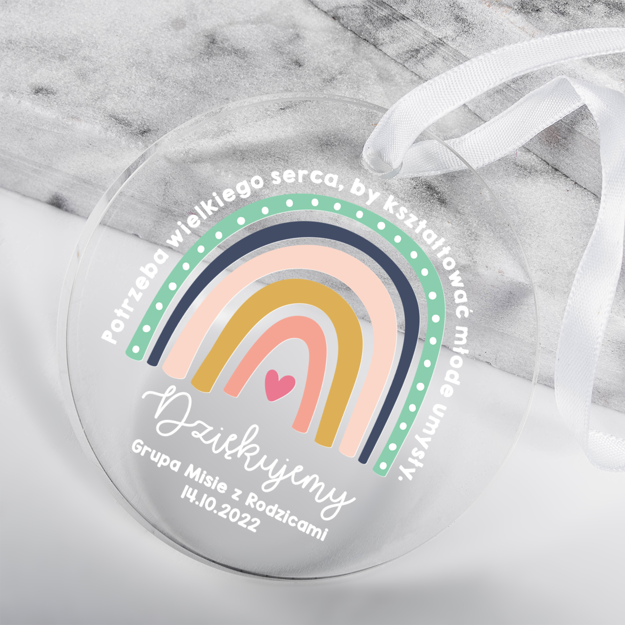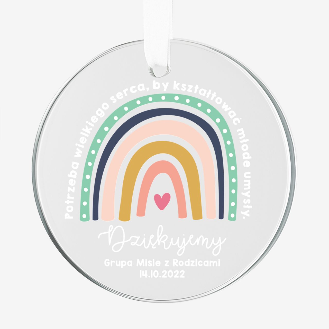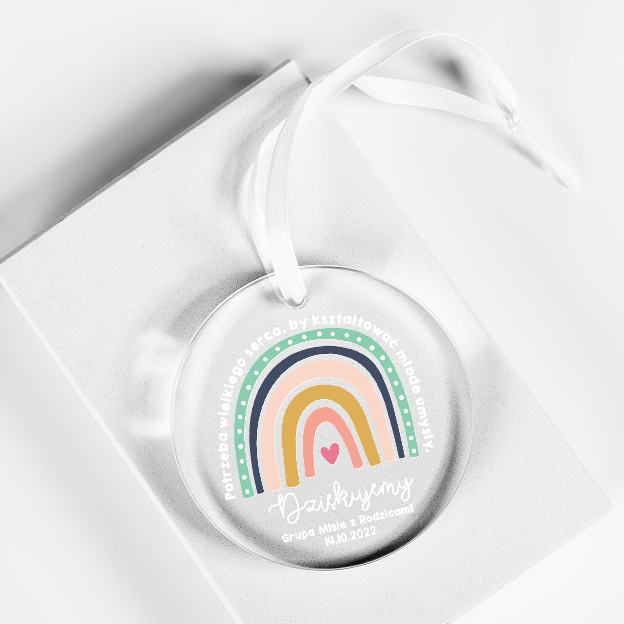 Kiedy patrzysz na tę zawieszkę, widzisz nie tylko przezroczysty, szklany kształt, a też emocje, które go otaczają. To specjalne połączenie wzoru i Twojej osobistej dedykacji sprawia, że zawieszka staje się niezastąpionym darem, a w sercu tego małego podarunku tkwi Twoje podziękowanie dla przedszkolanki, która pomogła Twojemu dziecku rozkwitać i rosnąć przez te cenne lata przedszkolne.