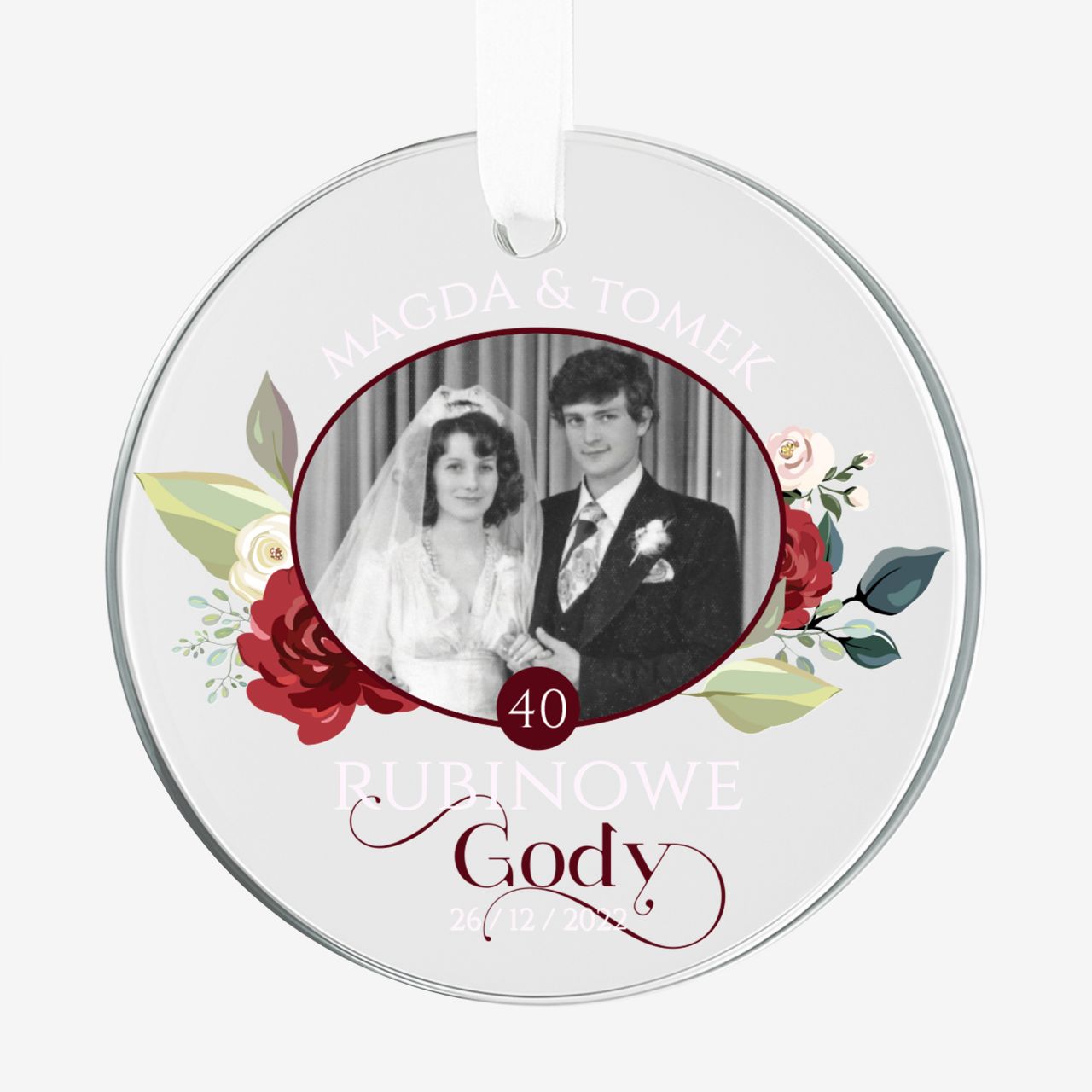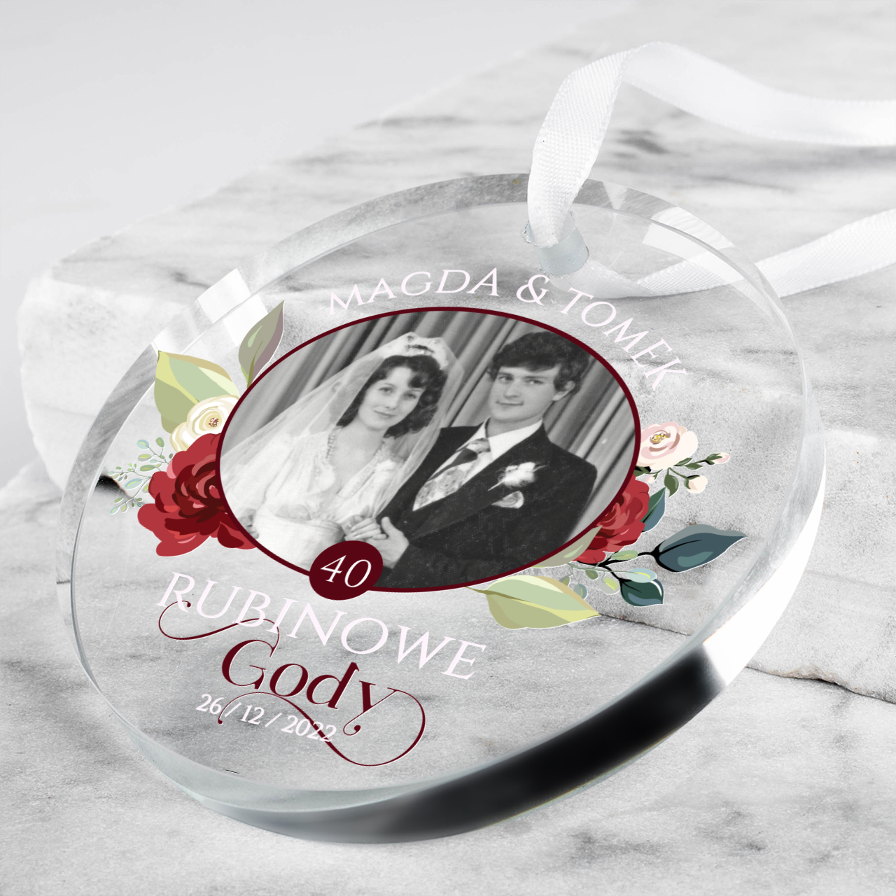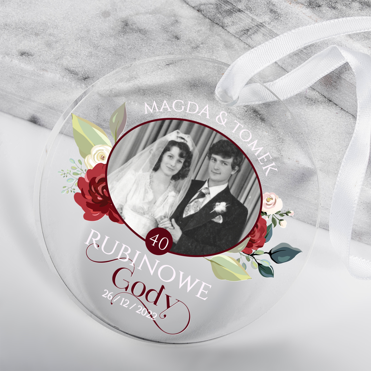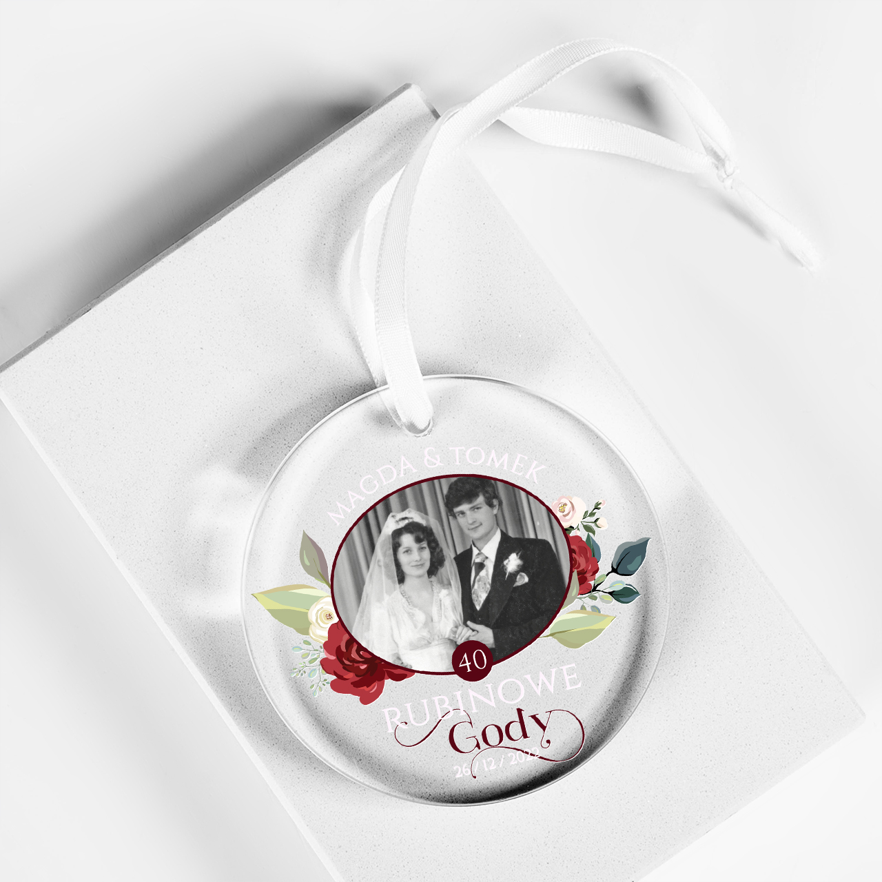 Pamiątkowa zawieszka RUBINOWE GODY, to idealny upominek na 40 rocznicę ślubu dla rodziców lub przyjaciół.