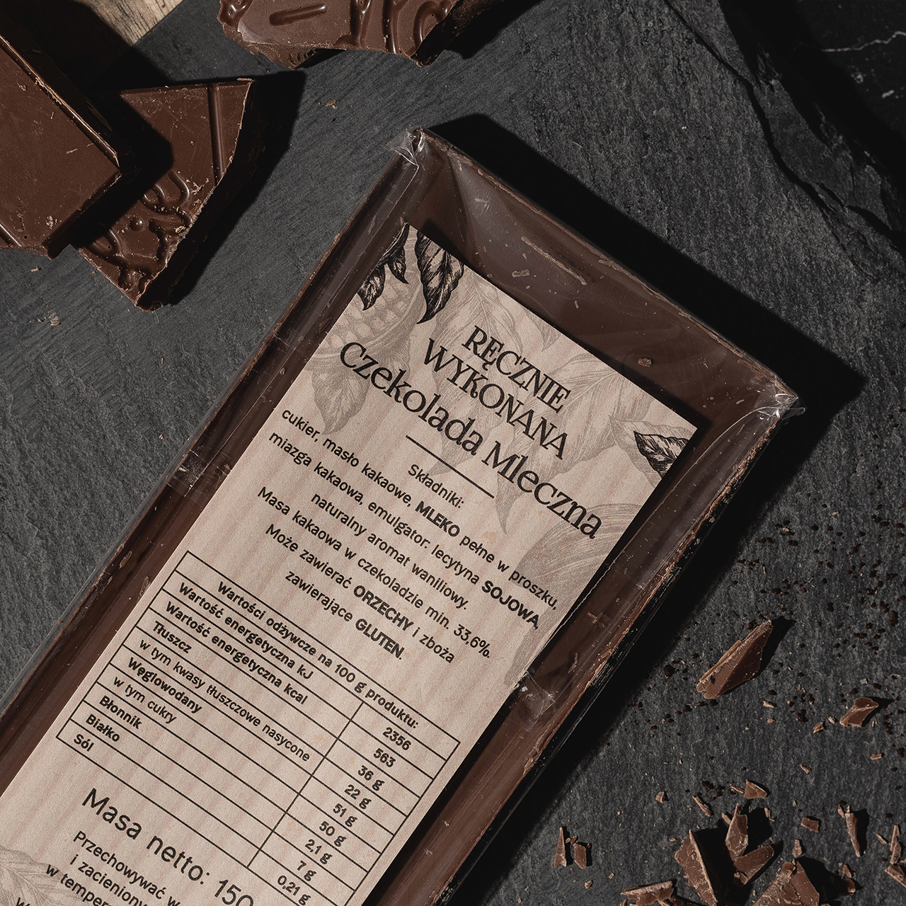 Ręcznie wykonana czekolada mleczna, waga netto 150g: