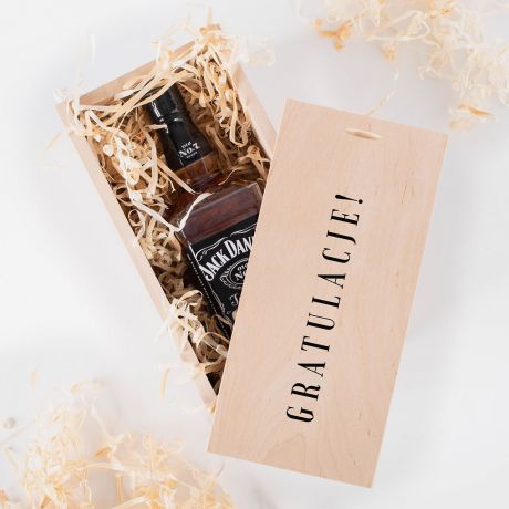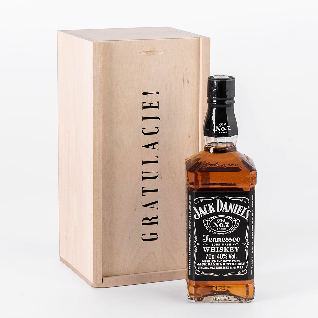 W skład zestawu wchodzi: whisky Jack Daniels 0,7l, skrzynka personalizowana