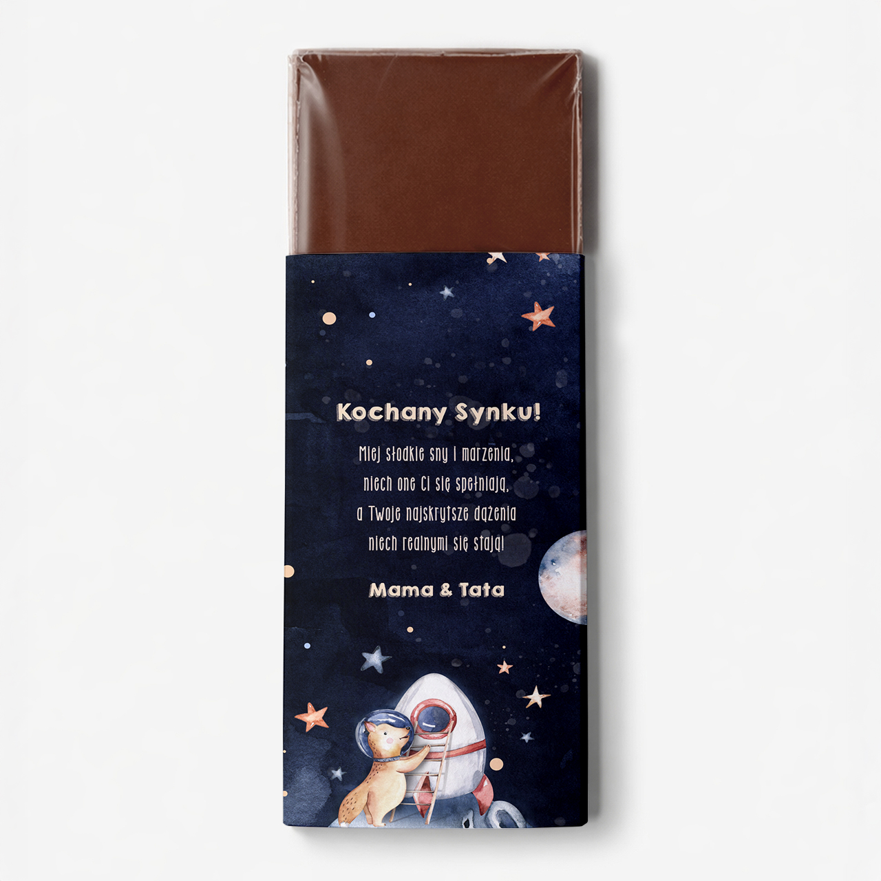 Wejdź w kosmiczną przygodę i podaruj małemu miłośnikowi kosmosu niezapomnianą radość z czekolady z imieniem w planety. Ta wyjątkowa czekolada została stworzona specjalnie dla młodych odkrywców, którzy kochają kosmiczne podróże i tajemnice wszechświata.