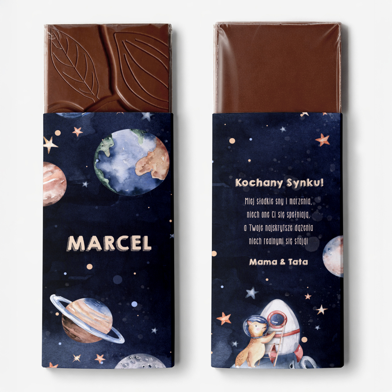 Czekolada z imieniem w PLANETY to nie tylko smaczna przekąska i prezent dla małego fana kosmosu. Każda tabliczka czekolady jest pięknie ozdobiona mapą kosmiczną, na której znajduje się imię obdarowanego dziecka. To sprawia, że czekolada staje się personalizowanym prezentem, który zostanie doceniony na długo.