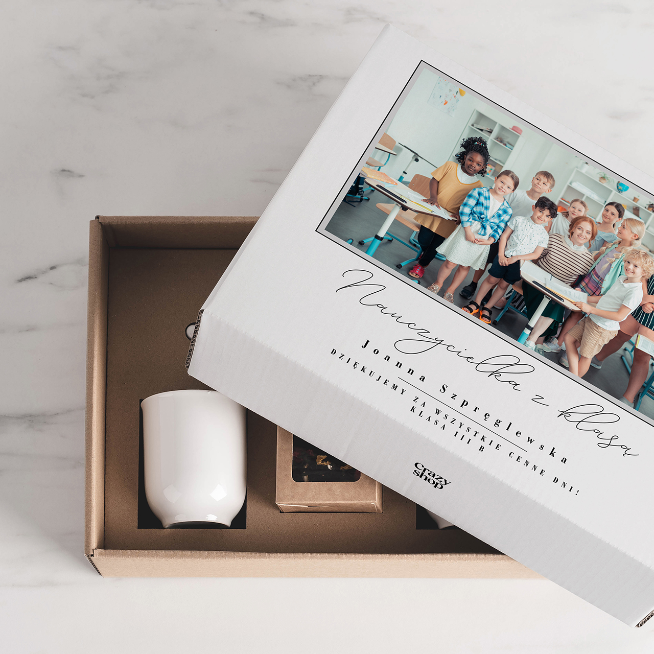 Kubki z herbatą box dla nauczyciela, to wyjątkowy zestaw prezentowy dla nauczyciela, który odgrywa ważną rolę w kształtowaniu przyszłości naszych dzieci. Ten zestaw na Dzień Nauczyciela jest idealnym prezentem, który pozwoli docenić ich trud i zaangażowanie.