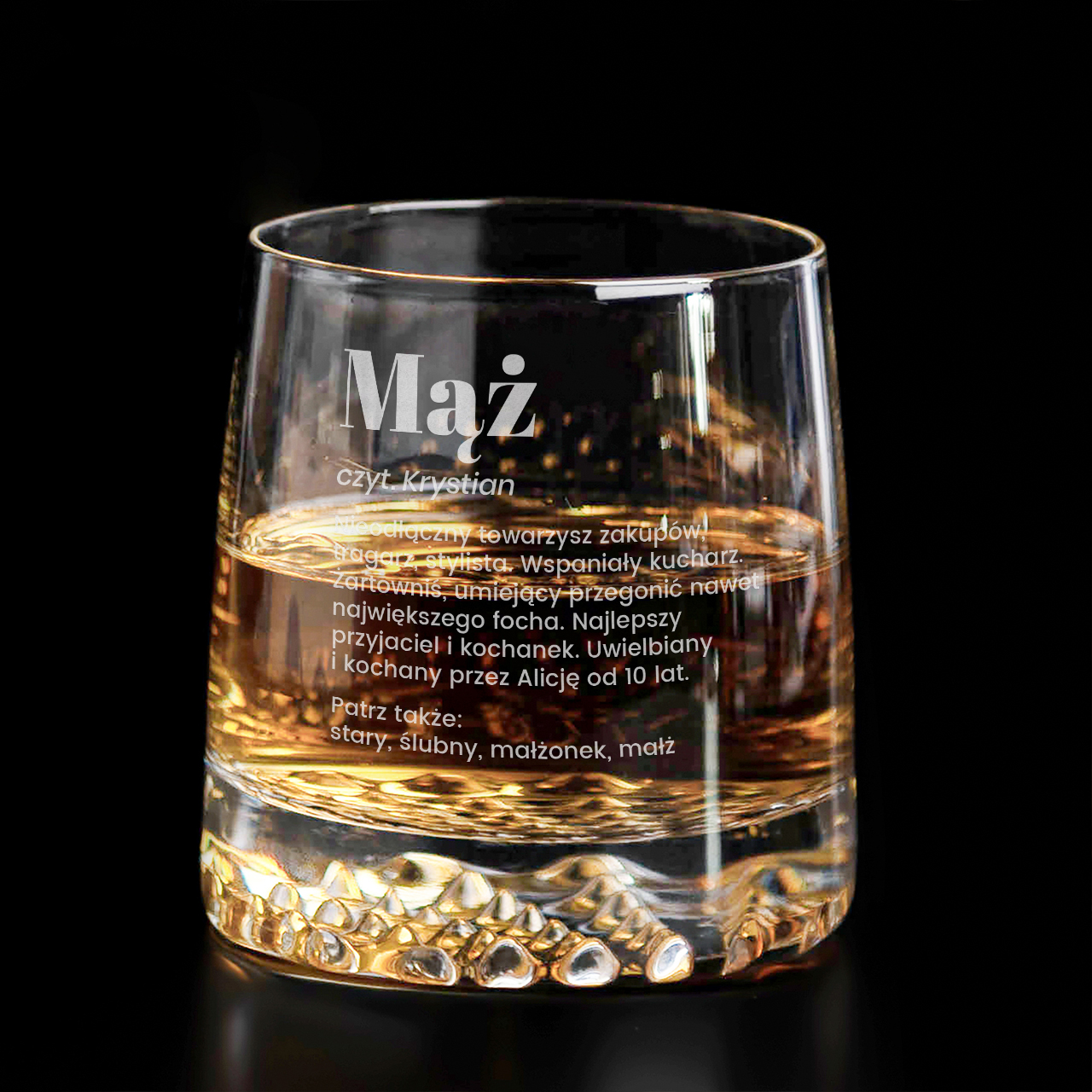 Podaruj swojemu mężowi wyjątkową pamiątkę z okazji rocznicy ślubu - personalizowaną szklankę do whisky z grawerem! Ta elegancka szklanka jest nie tylko praktycznym akcesorium dla miłośników whisky, ale także symbolem waszej miłości, która rośnie w siłę z każdym upływającym dniem.