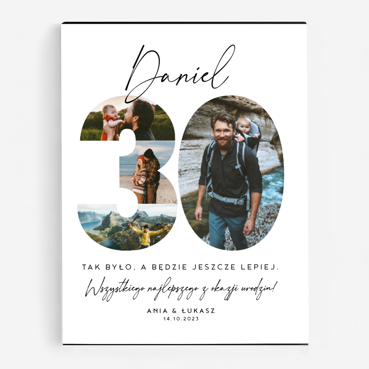 Na pudełku tych czekoladek dumnie prezentuje się duża liczba "30". Ale to nie koniec niespodzianek! To miejsce, które można wypełnić zdjęciami, ukazującymi najważniejsze chwile solenizanta na przykład z minionych już lat. To jakby podróż w czasie, od najmłodszych lat aż po teraźniejszość. Co więcej, nad i pod liczbą "30" znajduje się miejsce na słowa, specjalnie dla solenizanta. Mogą to być motywujące słowa, które inspirują do spełniania jeszcze większych marzeń i osiągania kolejnych sukcesów lub po prostu życzyć szczęścia, radości, zdrowia i spełnienia we wszystkich dziedzinach życia.