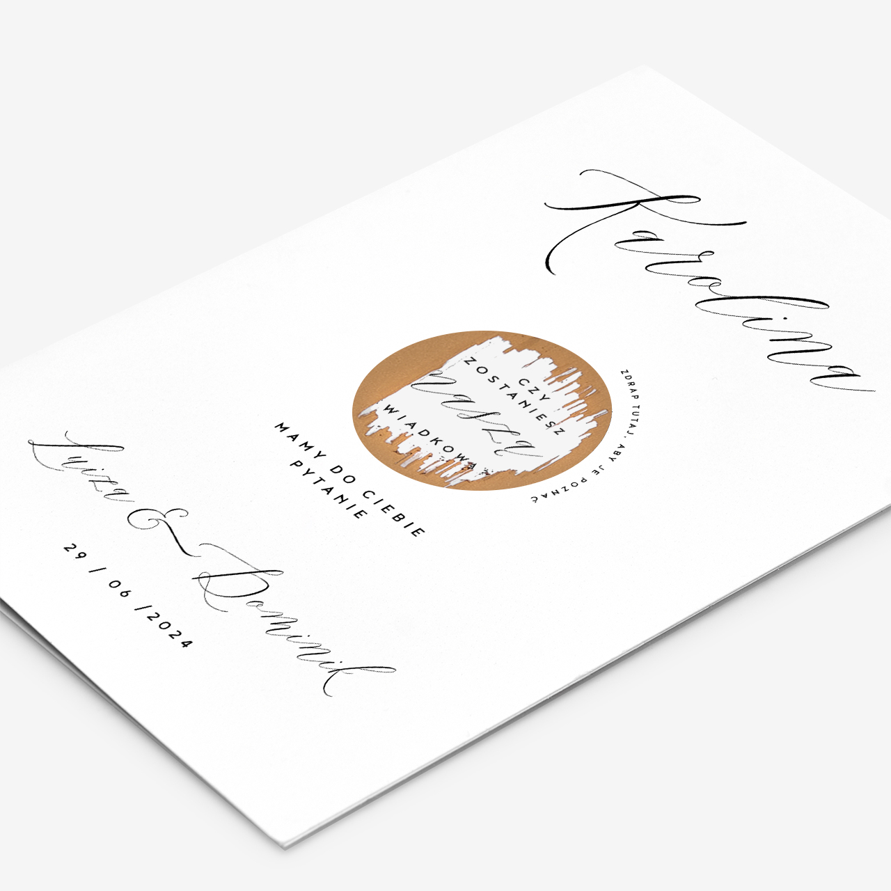 Kartka zdrapka ma możliwość personalizacji, a dodatkowym atutem jest ważna wiadomość pod warstwą do zdrapania. To właśnie wtedy moment gdy świadkowa odkrywa ukrytą treść, poczucie radości i emocji błyskawicznie rośnie. To niezwykłe doświadczenie, które zostaje na długo w pamięci.