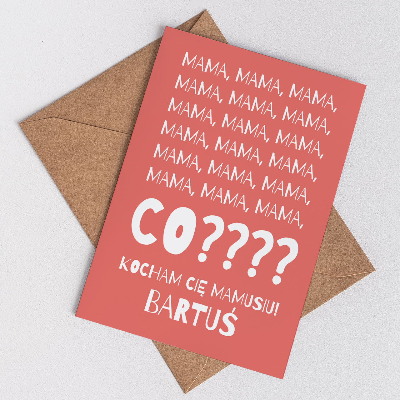 Szukasz idealnego prezentu na Dzień Mamy? Ta zabawna kartka z okazji DNIA MAMY to strzał w dziesiątkę! Zamiast standardowej, poważnej kartki z okazji Dnia Matki, postaw na coś, co rozbawi Twoją mamę do łez. Ta śmieszna kartka dla mamy to doskonały sposób, by wyrazić swoją miłość i jednocześnie sprawić by na jej twarzy pojawił się uśmiech. Z pewnością będzie to dla niej niezapomniany upominek na Dzień Mamy!
