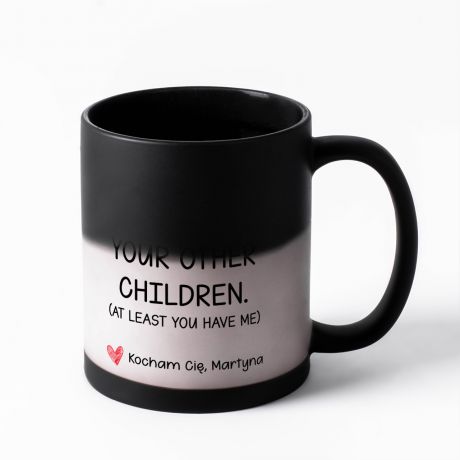 Co wyróżnia ten kubek z nadrukiem spośród innych prezentów na Dzień Matki? To magiczny efekt! Po wylaniu do kubka gorącej kawy lub herbaty, śmieszny nadruk zostanie odkryty, zaskakując i rozbawiając Twoją mamę. Magiczny kubek DLA MAMY ze śmiesznym nadrukiem został wykonany z wysokiej jakości ceramiki, co gwarantuje trwałość i długotrwałą radość z używania.