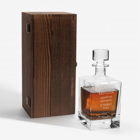 Skrzynka, w której jest umieszczona karafka, dodaje elegancji i sprawia, że jest gotowa do wręczenia bez dodatkowego pakowania. To idealny grawerowany prezent dla taty na różne okazje.