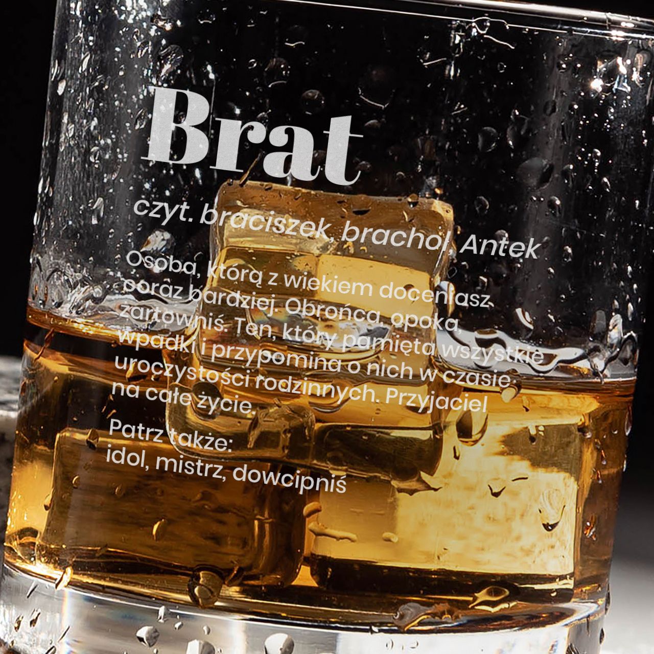Jeżeli szukasz wyjątkowego podarunku dla brata, który będzie jednocześnie funkcjonalny i pełen osobistego charakteru, grawerowana szklanka do whisky DEFINICJA będzie doskonałym wyborem. Sprawdzi się jako prezent dla brata na urodziny, imieniny, święta i inne okazje.