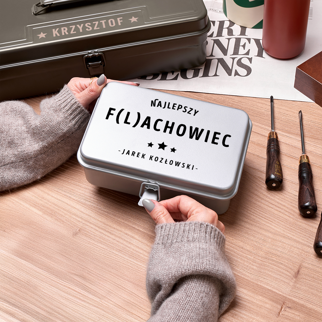 Skrzynka metalowa zamykana szara FLACHOWIEC praktyczny prezent dla faceta, który z pewnością spełni jego oczekiwania i stanie się niezastąpionym elementem wyposażenia. Niezależnie od tego, czy obdarowany jest doświadczonym fachowcem, czy dopiero zaczyna swoją przygodę z majsterkowaniem. Ten wyjątkowy produkt to nie tylko funkcjonalny dodatek do wyposażenia warsztatu, ale także praktyczny prezent dla mężczyzny z pasją do majsterkowania.