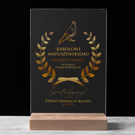 Personalizowana statuetka zwycięzcy DLA HODOWCY GOŁĘBI to wyjątkowy upominek, który uhonoruje pasję i osiągnięcia każdego miłośnika gołębi. Ta elegancka statuetka, wyróżnia się swoim nowoczesnym designem i precyzyjnym wykonaniem.