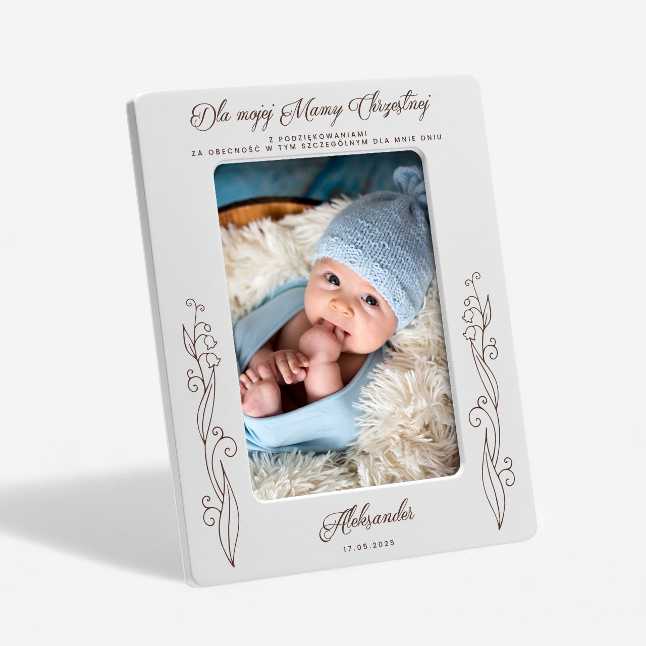 Szukasz wyjątkowego sposobu na podziękowanie matce chrzestnej za jej wsparcie i obecność w życiu dziecka? Personalizowana ramka na zdjęcie to doskonały wybór, który z pewnością wywoła wzruszenie i zostanie piękną pamiątką na lata. Elegancka, biała ramka z możliwością dodania indywidualnego graweru stanie się nie tylko piękną ozdobą, ale również wyrazem wdzięczności za opiekę i miłość. Personalizowana ramka na zdjęcia pozwala na umieszczenie ulubionej fotografii, która zawsze będzie przypominać o wyjątkowej więzi między chrzestną a dzieckiem.