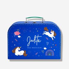Ten niebieski kuferek w jednorożce jest idealny jako walizka tekturowa dla dzieci, łącząc w sobie funkcjonalność i urok. Świetnie sprawdzi się jako kuferek dla dziewczynki, w którym można przechowywać wszystkie skarby. To również fantastyczny prezent dla dziewczynki 5 lat oraz prezent dla dziewczynki 6 lat, który rozweseli każde dziecko.