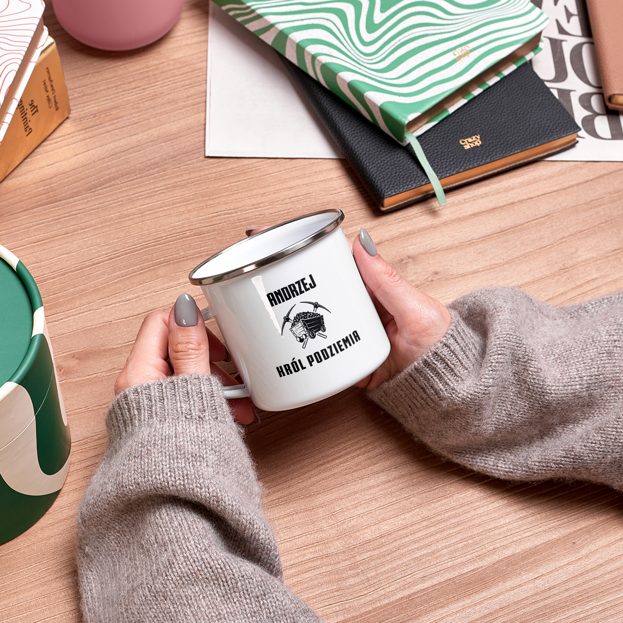 Emaliowany kubek górnika KRÓL PODZIEMIA to idealny gadżet dla każdego, kto ceni sobie praktyczne i oryginalne rozwiązania. Ten kubek dla górnika wyróżnia się wyjątkowym nadrukiem "KRÓL PODZIEMIA", który świetnie oddaje charakter tej wymagającej profesji. Doskonały zarówno do pracy pod ziemią, jak i na co dzień w domu.