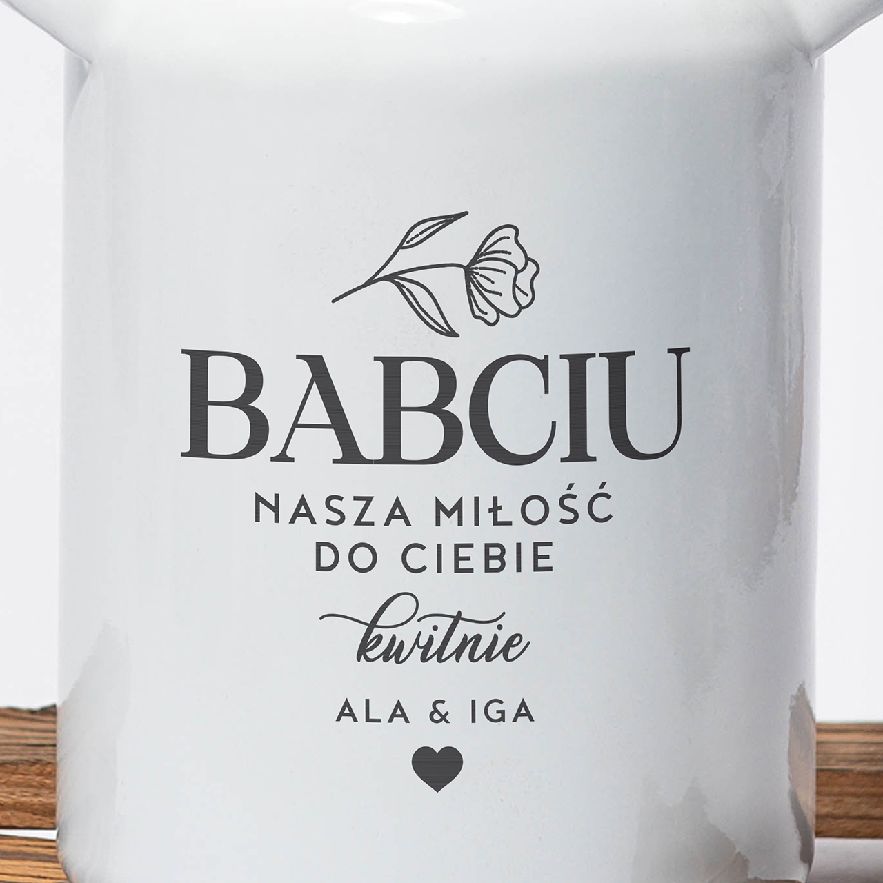 Zastanawiasz się nad prezentem? Personalizowany prezent dla babci to zawsze trafiony pomysł! Taki podarunek sprawdzi się na każdą okazję, czy to jako prezent dla babci na urodziny, prezent dla babci na święta, czy też jako prezent na dzień babci. Emaliowany WAZON DLA BABCI z grawerem to piękny sposób, by pokazać, jak bardzo cenisz jej obecność i wnieść trochę ciepła do jej codzienności.