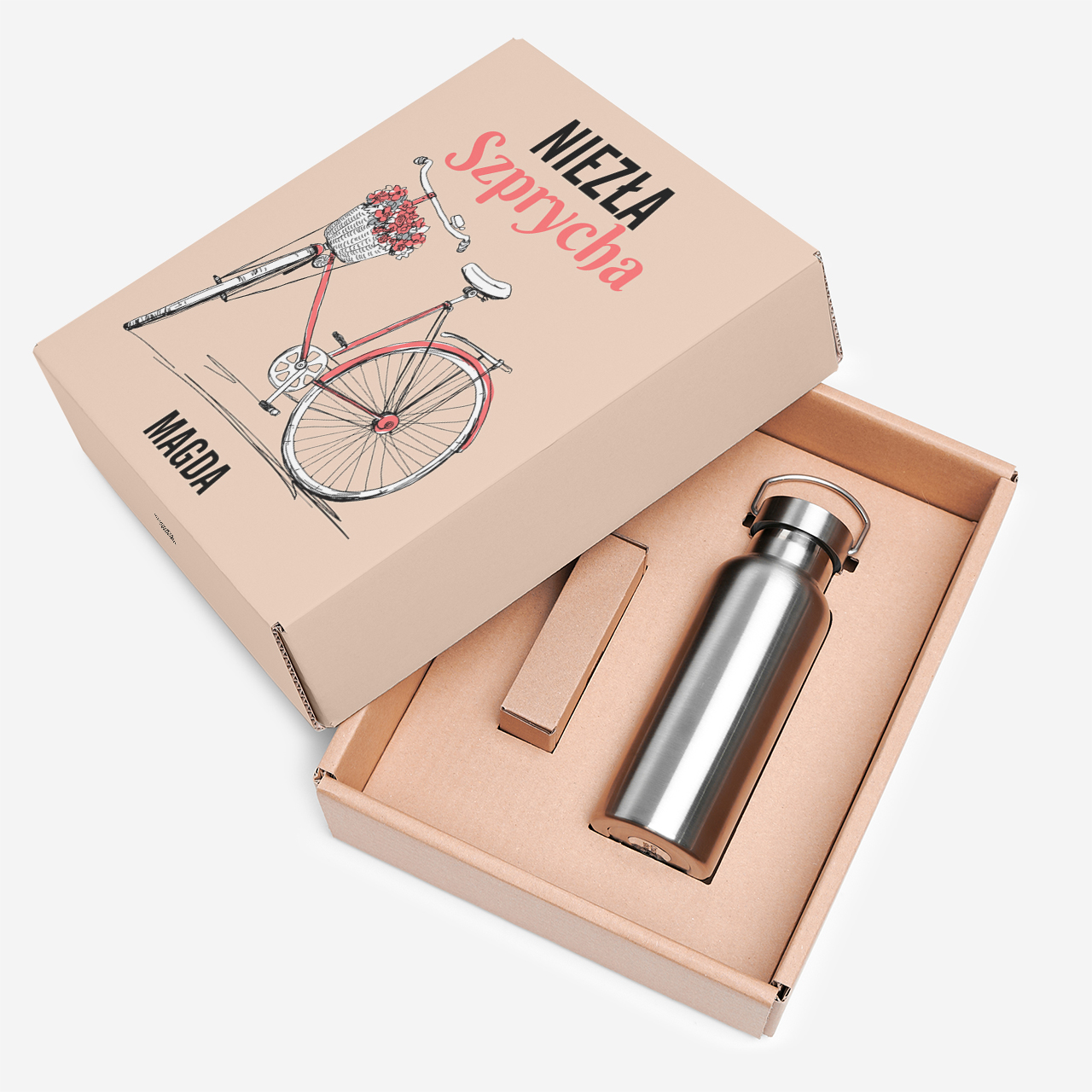 To świetny prezent dla podróżniczki, która ceni trwałe i praktyczne gadżety rowerowe. Bidon rowerowy stalowy utrzymuje temperaturę napoju, a multitool rowerowy przydaje się podczas jazdy. Personalizowane pudełko dodaje uroku, sprawiając, że to wyjątkowy prezent dla rowerzystki. Zestaw jest solidny, funkcjonalny i pasuje na każdą okazję.