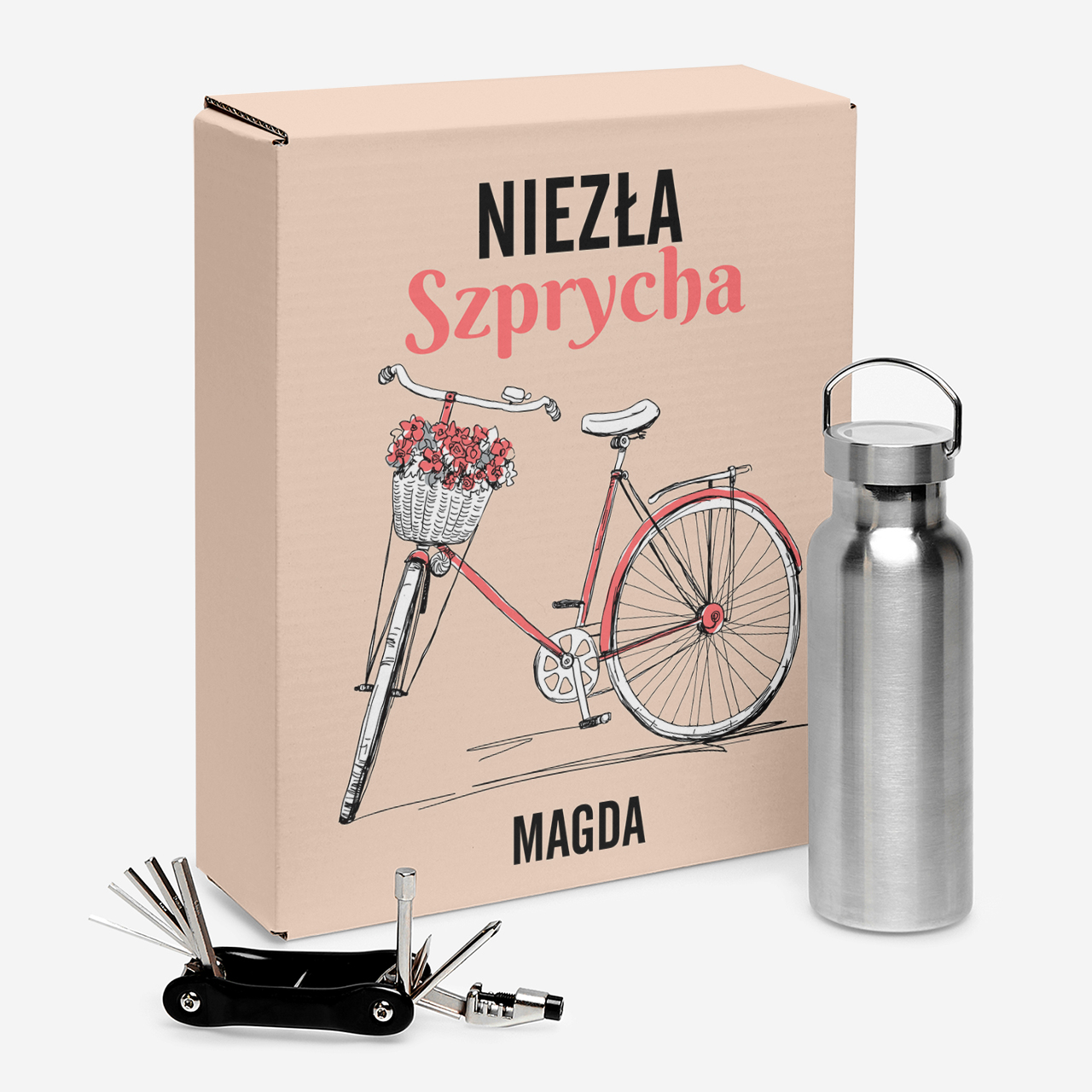 Szukasz pomysłu na prezent dla niej? Zestaw gadżetów rowerowych NIEZŁA SZPRYCHA to praktyczny i stylowy upominek dla rowerzystki. W zestawie jest stalowy bidon rowerowy, idealny na długie trasy oraz multitool rowerowy przydatny w awaryjnych sytuacjach. Całość zapakowana w personalizowane pudełko to wyjątkowy prezent dla żony, który podkreśli jej pasję do jazdy na rowerze.