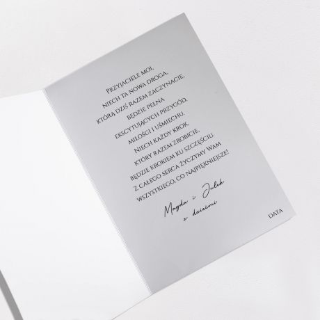 Upominek na ślub w formie tej kartki to idealny wybór na każdą okazję, doskonale komponujący się z innymi prezentami. Będzie to wyjątkowy upominek dla nowożeńców, który wzbogaci dzień ich ślubu. Taka kartka ślubna to połączenie elegancji, stylu i emocji, które zostaną zapamiętane przez młodą parę na zawsze. Kartka ślubna ze złoceniem BĄDŹCIE SZCZĘŚLIWI to upominek dla pary młodej, który zawsze będzie przypominać o ich najpiękniejszym dniu.