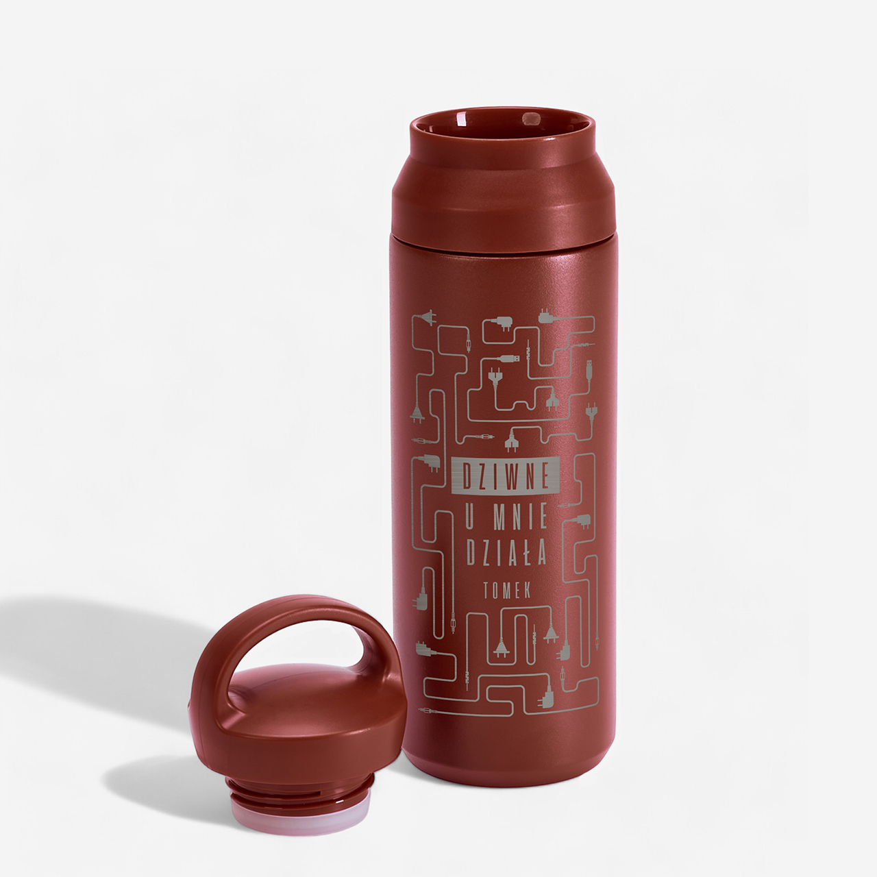 Nasz grawerowany termos U MNIE DZIAŁA będzie świetnym wyborem dla kogoś, kto chce mieć zawsze ciepły napój pod ręką. Taki stylowy termos z grawerem przyciąga uwagę i świetnie sprawdza się w codziennym użytkowaniu. Jeśli szukasz czegoś nietuzinkowego, termos z napisem "U MNIE DZIAŁA" z pewnością rozbawi każdego programistę.